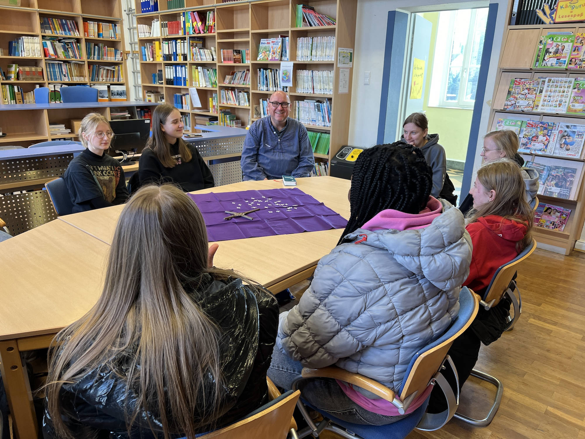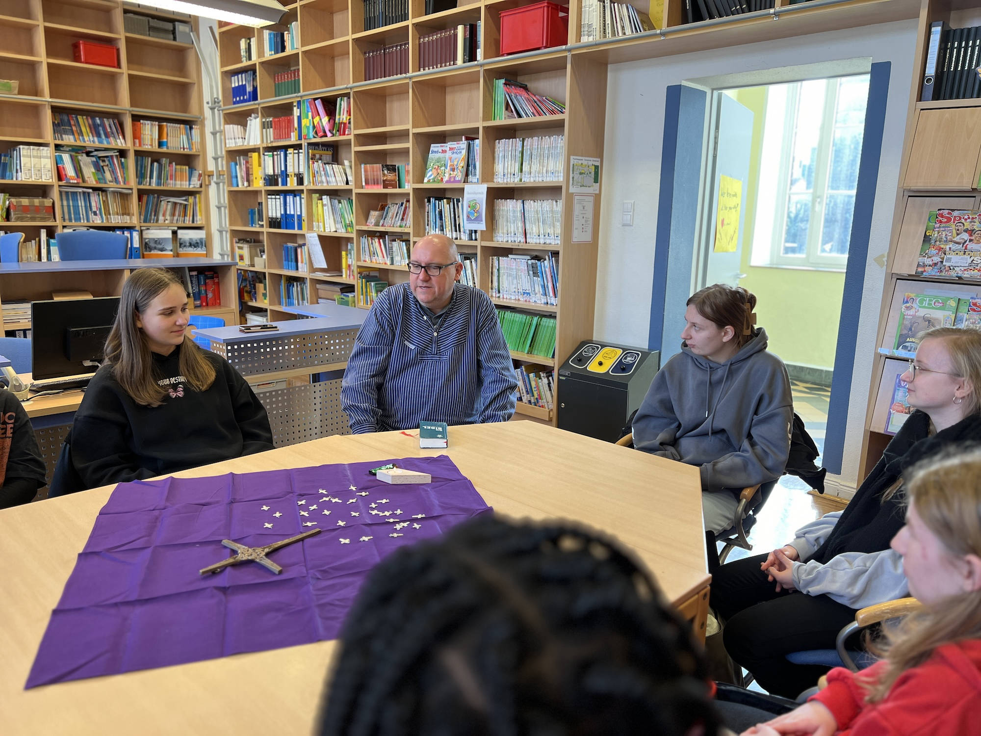 Donnerstags (natürlich nur in der Schulzeit) in der ersten großen Pause (9.20 Uhr) öffnet sich für Euch die Tür der Bibliothek. Um 9.30 Uhr beginnt ein kurzer Impuls, z.B. ein Text, ein Lied, ein Bild, o.ä. Manchmal gibt es noch eine kleine Überraschung. Damit niemand zu spät zurück in den Unterricht kommt, dauert der Impuls nicht länger als 8 Minuten, meist kürzer. Selbstverständlich darf während des Pausensnacks gegessen und getrunken werden, denn auf das Pausenbrot soll nicht verzichtet werden.