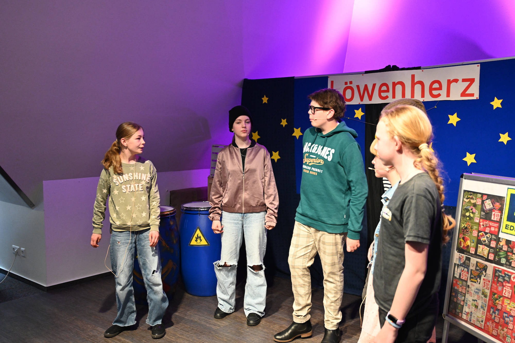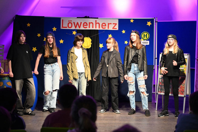 In einem gemeinsamen Projekt haben der WPK 6 Musical und der Schulchor das Musical „Löwenherz“ mit insgesamt vier Vorstellungen erfolgreich auf die Bühne gebracht. Sowohl die SuS der 5. und 6. Klassen als auch die Eltern und andere Musicalbegeisterte konnten eine gelungene Kombination aus Schauspiel und mitreißenden Musicalsongs erleben.