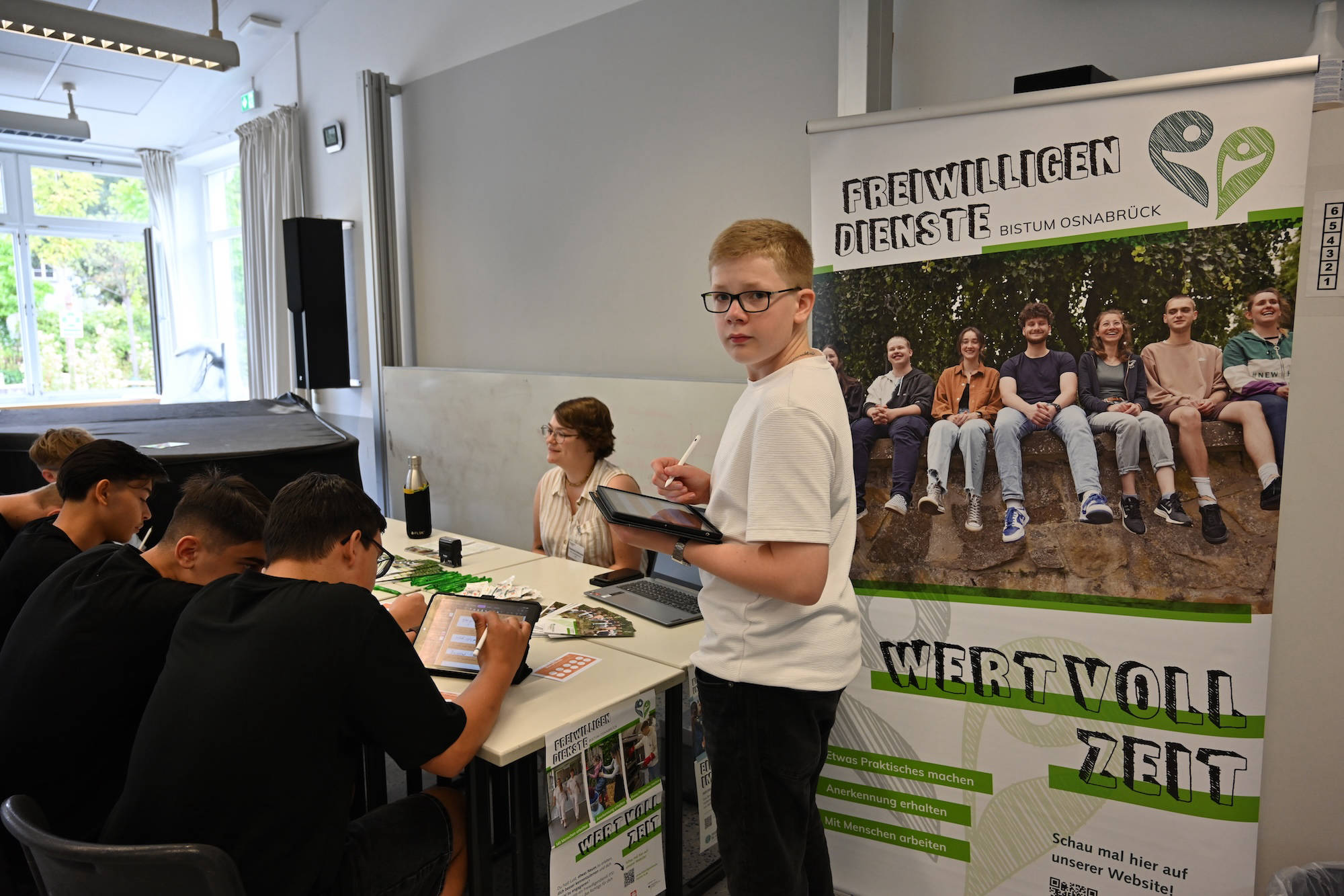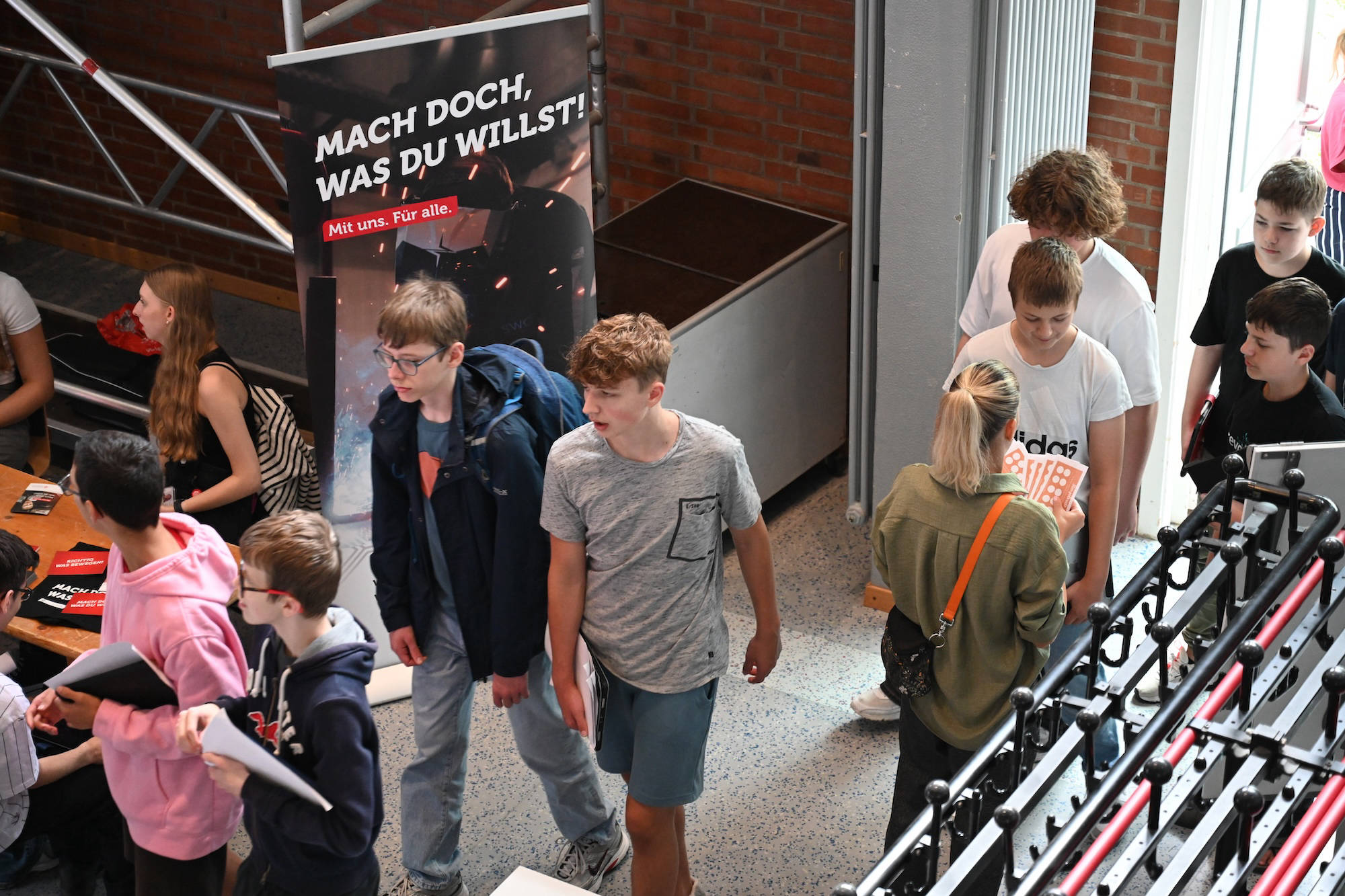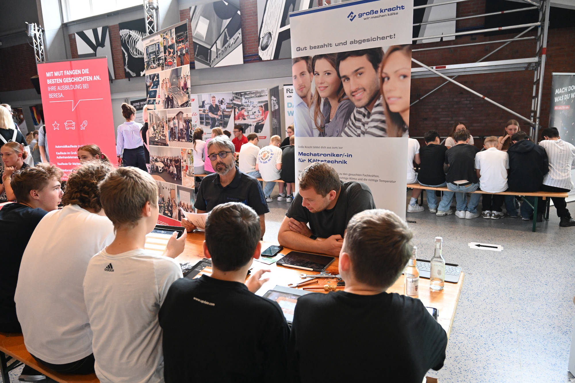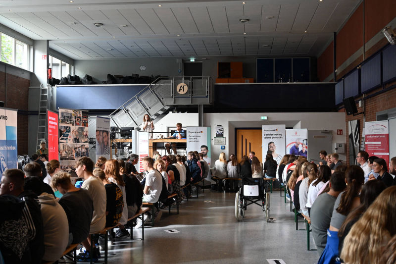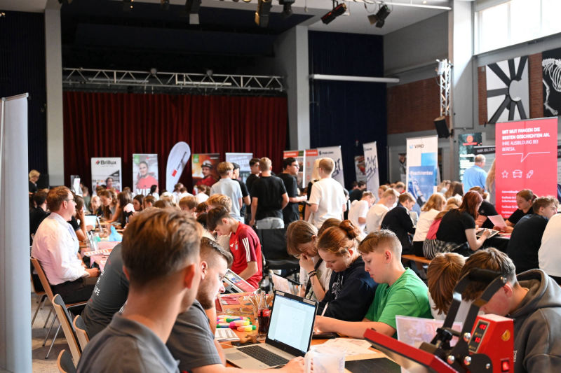 Am 9. Berufsorientierungstag an der Domschule wurde den Schülerinnen und Schülern des 8., 9. und 10. Jahrgangs eine wertvolle Gelegenheit angeboten, sich umfassend über verschiedene Ausbildungsberufe und Karrierewege zu informieren. 30 Unternehmen - darunter auch Berufsschulen - präsentierten sich und stellten ihre vielfältigen Ausbildungsmöglichkeiten vor, was zu einem intensiven Austausch führte. Die Veranstaltung förderte das Verständnis der Schülerinnen für unterschiedliche Branchen und half ihnen, erste Kontakte z.B. für die bevorstehenden Praktika zu knüpfen. Insgesamt war der Tag ein wichtiger Schritt in Richtung berufliche Zukunft.