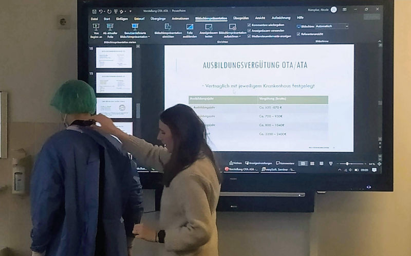Am 15. November 2024 hatte der Profilkurs Gesundheit und Soziale des 10. Jahrgangs die Gelegenheit, das Niels Stensen Bildungszentrum zu besuchen. Nach einer herzlichen Vorstellungsrunde führte Frau Rümpker die Schülerinnen in die Welt der Operationstechnischen Assistenz (OTA) ein. Sie erläuterte die notwendigen Fähigkeiten und Fertigkeiten, die für diesen Beruf unerlässlich sind, und gab einen spannenden Überblick über die vielfältigen Tätigkeiten, die den Arbeitsalltag von Pflegefachkräften prägen.