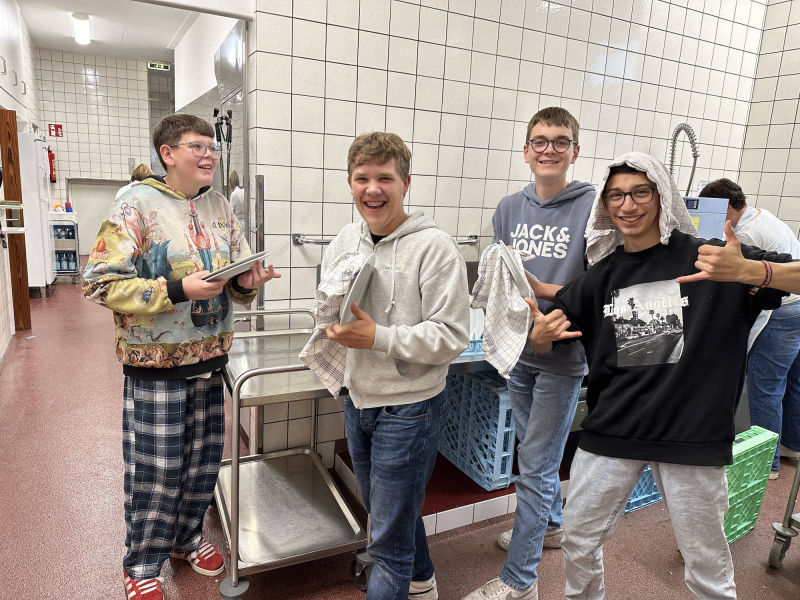 In unserer Freizeit durften wir einkaufen, unserer Musik im Partykeller hören und die Boxen nutzen oder Tischtennis und Billard spielen. Zudem haben sich die Jahrgänge gemischt und wir haben alle zusammen Werwolf gespielt. Wir haben uns sehr amüsiert und sind uns dabei alle ein Stück nähergekommen. So gegen 8:00 Uhr wurden wir mit „Guten Morgen Sonnenschein“ geweckt und um 8:30 Uhr versammelten wir uns im Essensaal zum reichhaltigen Frühstück. Gegen 12:30 Uhr gab es warmes Mittagessen, das allen sehr gut geschmeckt hat. Am Nachmittag gab es Kuchen und um 18:30 Abendbrot. Insgesamt kann man sagen, dass die SV Fahrt ein voller Erfolg war und wir alle sehr viel Spaß hatten. Am Mittwoch werden wir die Projekte, die wir uns für dieses Schuljahr wünschen, Frau Müller vorstellen, die zu uns in den SV-Raum kommt. Unter anderem geht es um die Sitzgelegenheiten auf dem Schulhof und einen Wettbewerb, wo man etwas gewinnen kann. Seid gespannt!