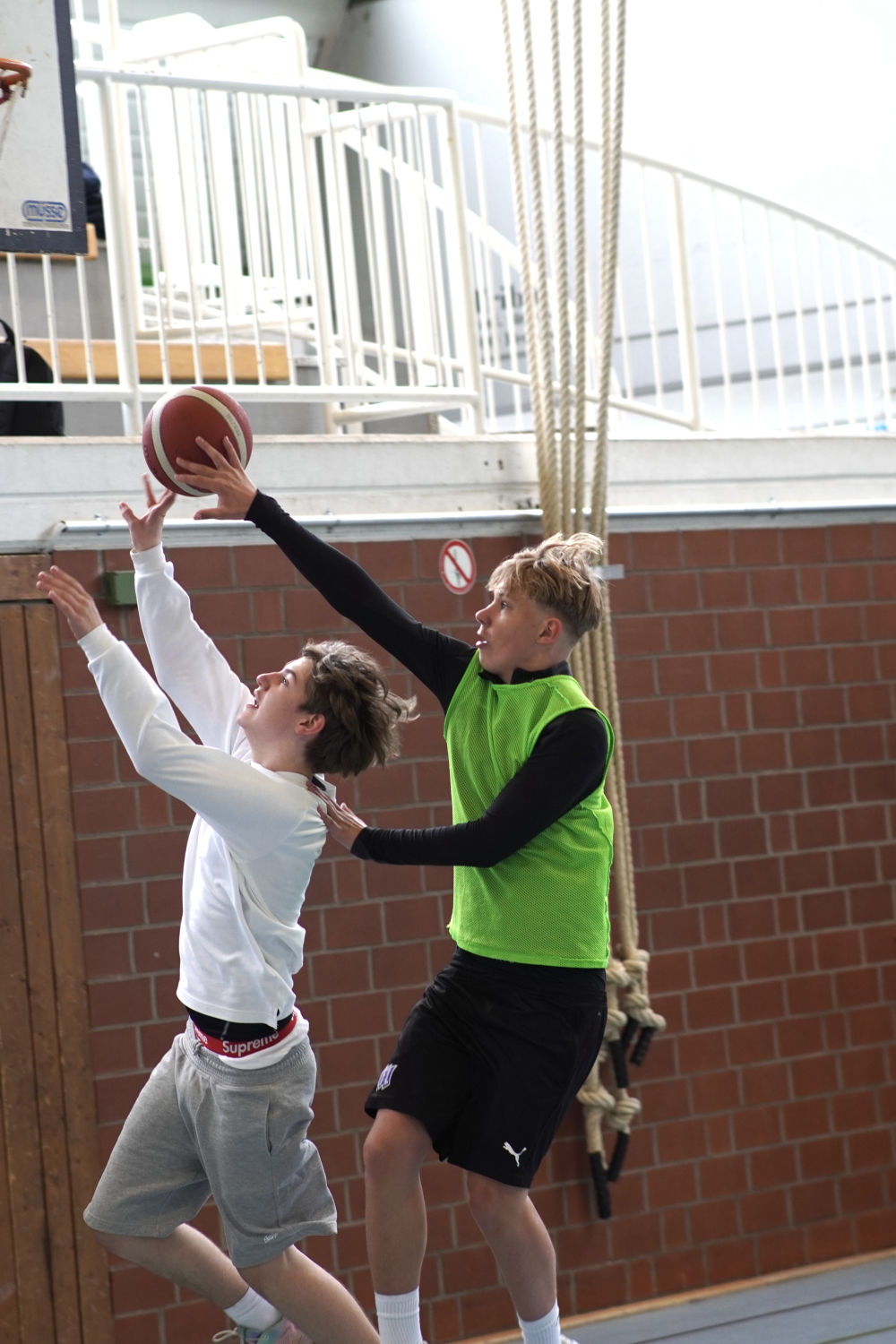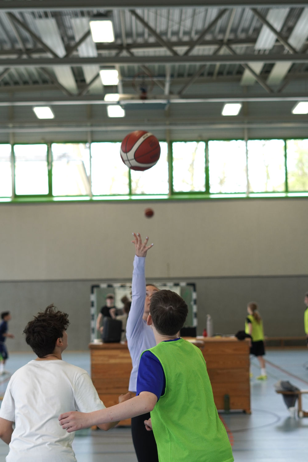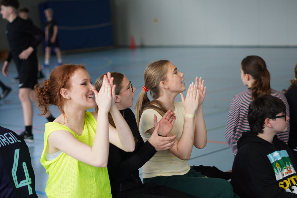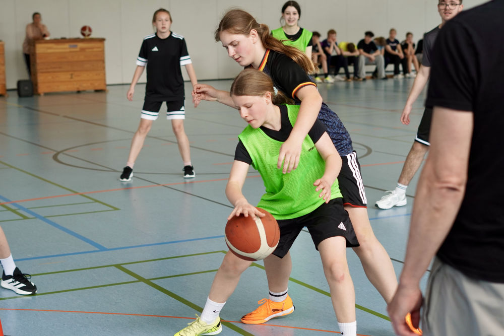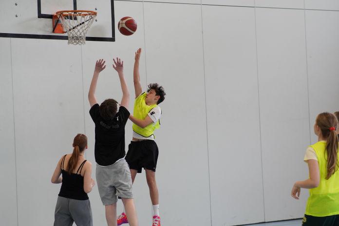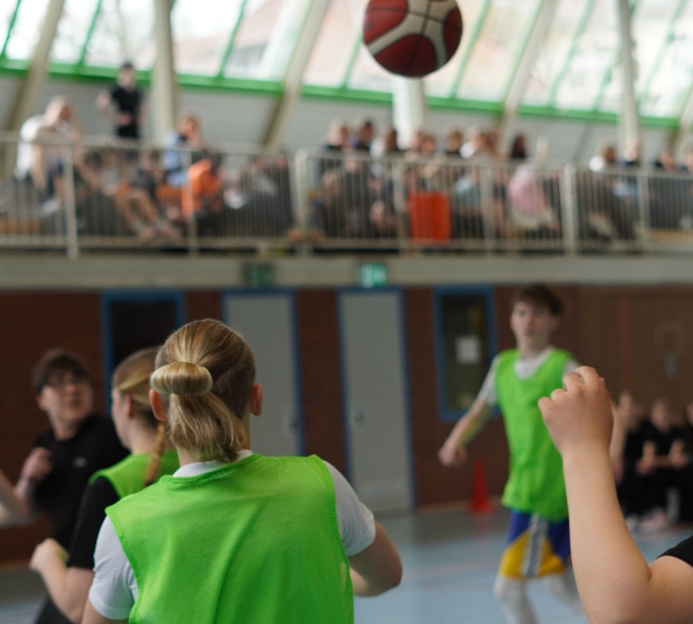 Auch abseits des Spielfelds herrschte eine tolle Atmosphäre. Auf der Tribüne feuerten die Schülerinnen und Schüler nicht nur ihre eigenen Klassen, sondern auch andere Teams lautstark an. Selbst in den Pausen wurde weiter Basketball gespielt – ein Zeichen für die große Begeisterung für den Sport.