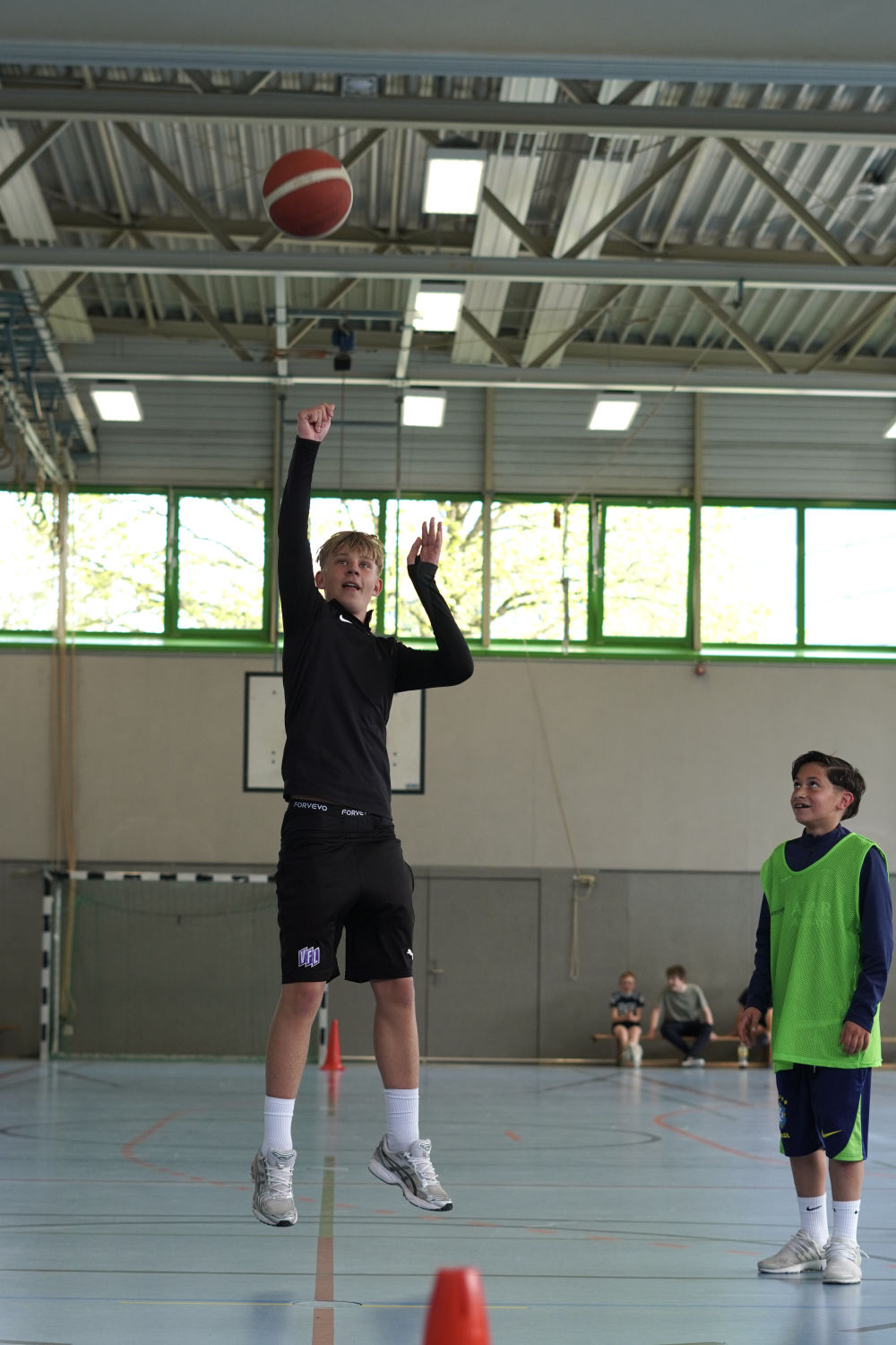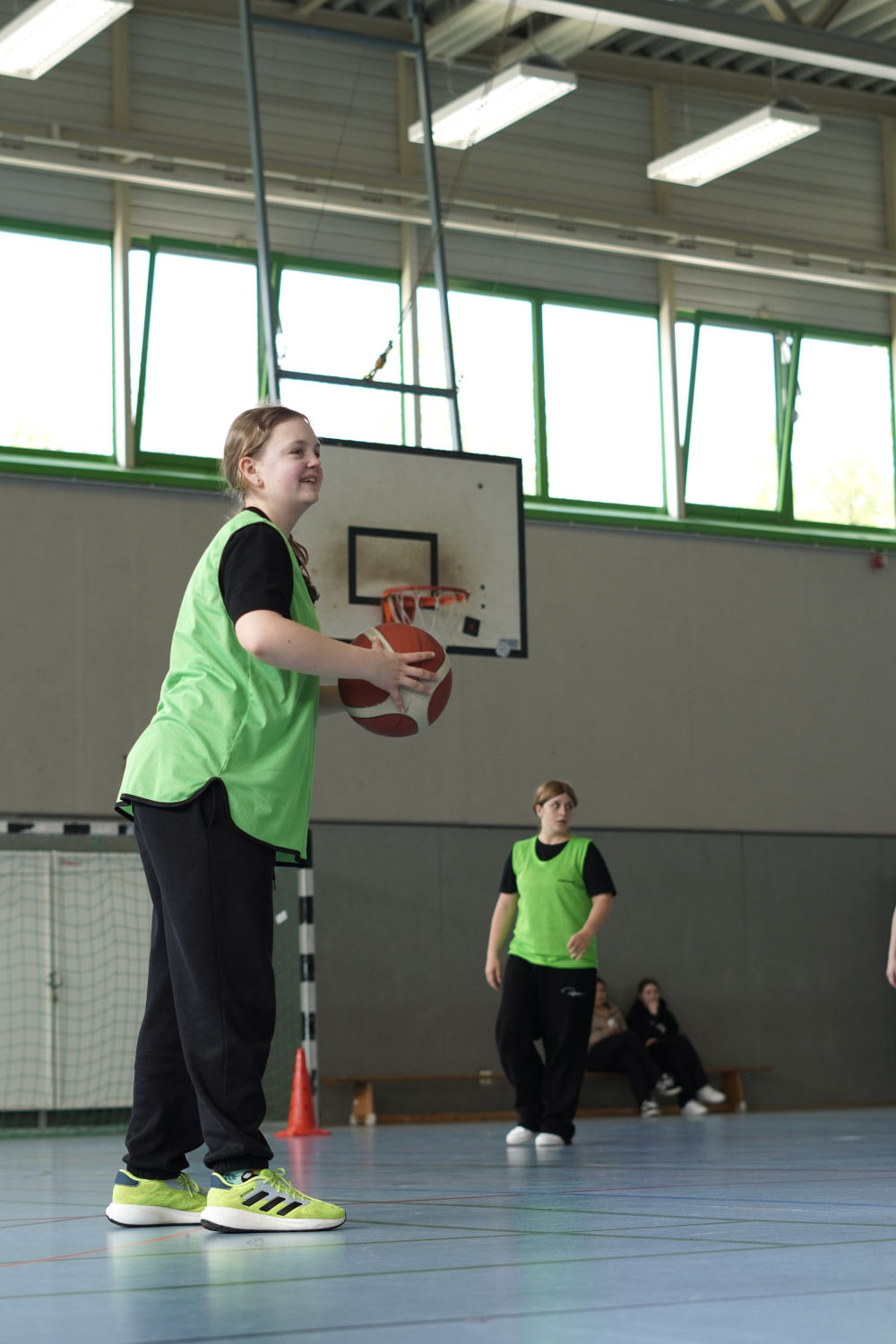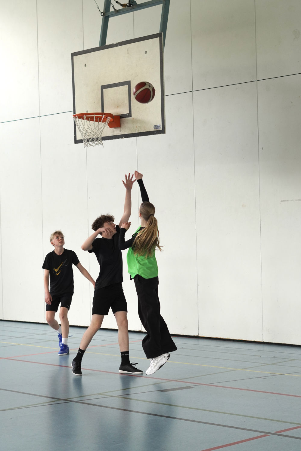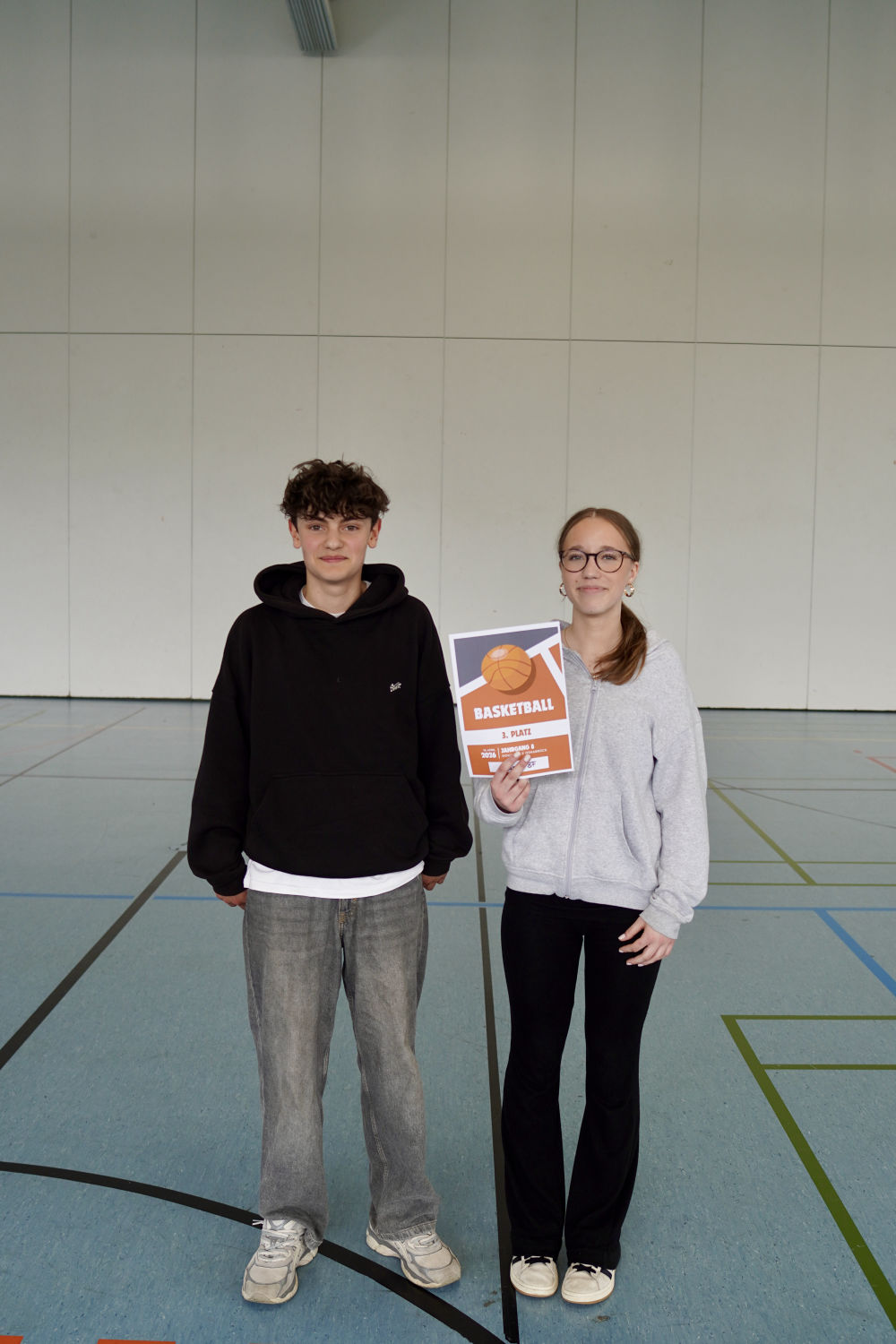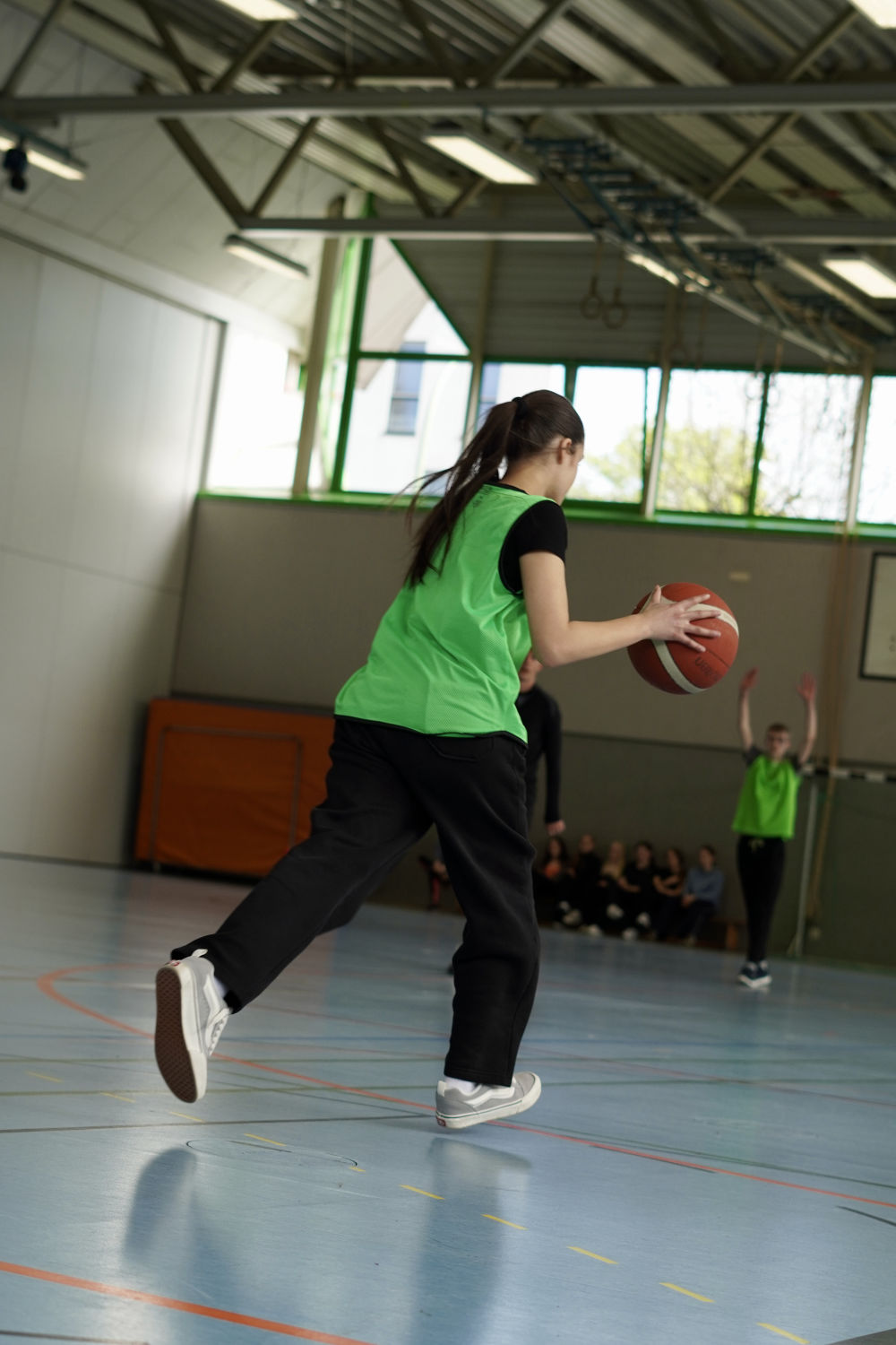 Auch abseits des Spielfelds herrschte eine tolle Atmosphäre. Auf der Tribüne feuerten die Schülerinnen und Schüler nicht nur ihre eigenen Klassen, sondern auch andere Teams lautstark an. Selbst in den Pausen wurde weiter Basketball gespielt – ein Zeichen für die große Begeisterung für den Sport.