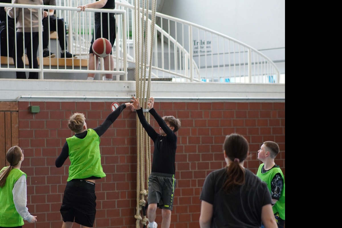 Ein spannendes und sportlich intensives Basketballturnier fand vergangene Woche an der Domschule statt. Die Klassen 8A bis 8F nahmen mit großem Engagement teil und zeigten eindrucksvoll, was sie in den vergangenen Wochen im Sportunterricht gelernt hatten. Dort hatten sie sich durch Technik- und Taktikschulungen auf das Turnier vorbereitet.