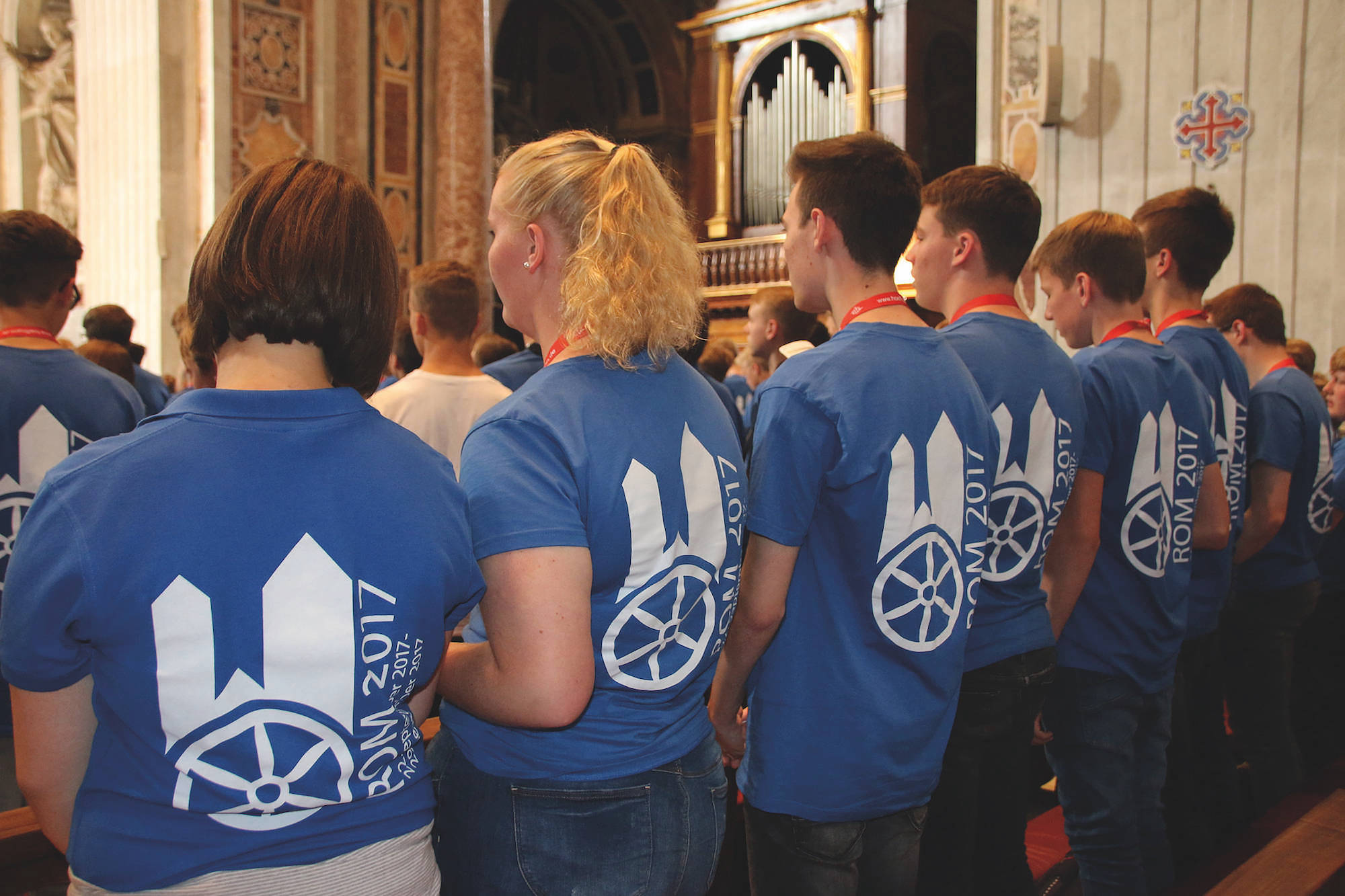 Unterstützung der Romfahrt: T-Shirt / Bändchen / Kerzen / Liederbücher / Banner / Jahrbuch