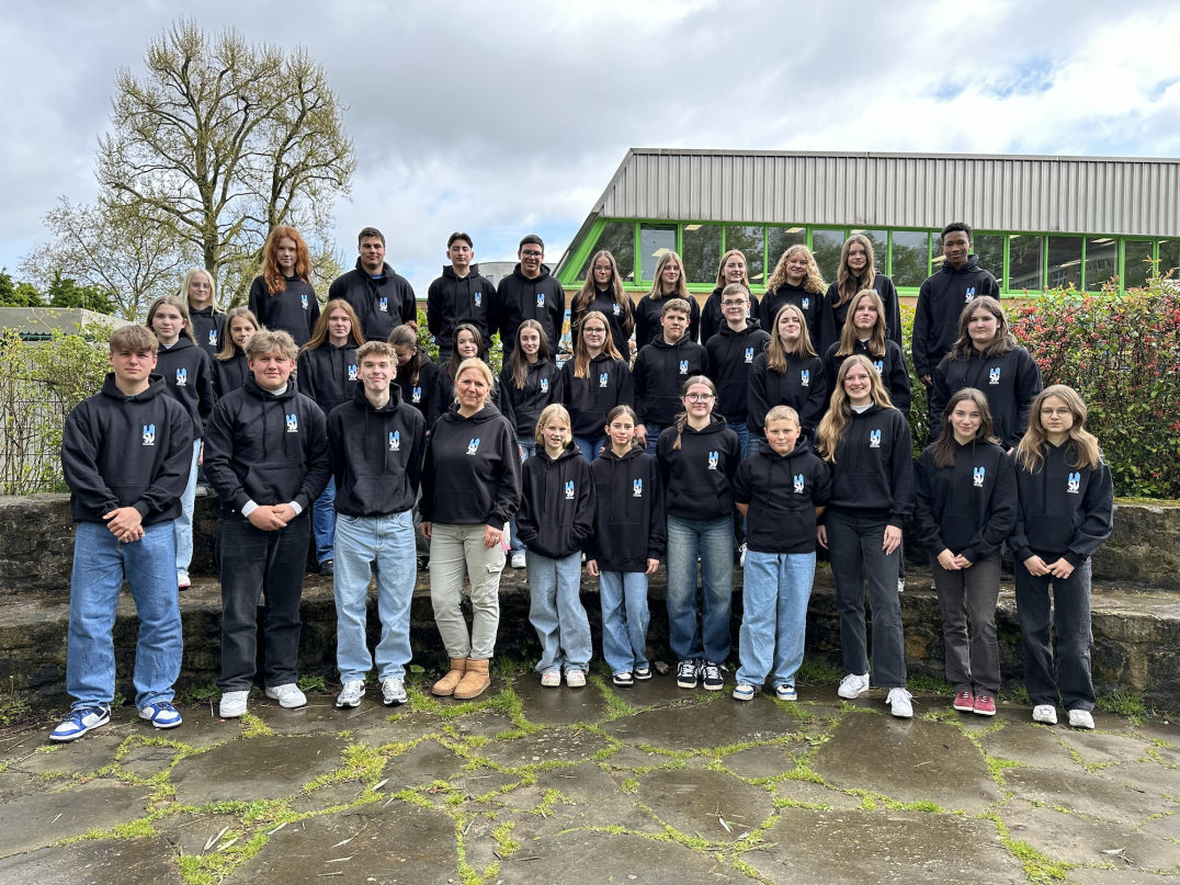Ein großes Dankschön geht an den Förderverein, der uns dabei unterstützt, uns als Gemeinschaft zu fühlen. Mit diesen tollen Hoodies haben wir wieder ein schönes einheitliches Bild bei unseren Aktionen. Die Schülerinnen und Schüler der Schülervertretung haben sehnsüchtig darauf gewartet und tragen ihn jetzt mit Stolz auch mal einfach so zur Schule oder in ihrer Freizeit.