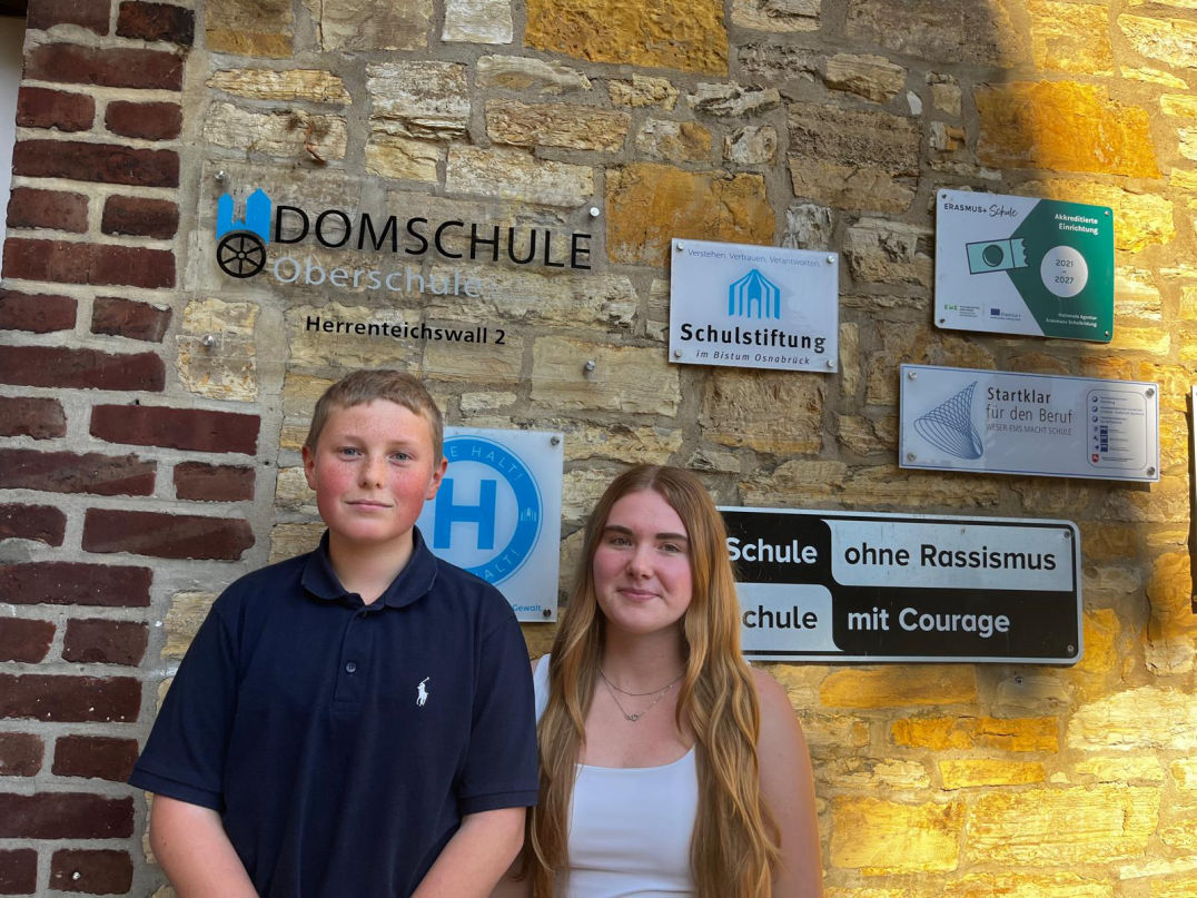 Theresa ist 15 Jahre alt und geht in die 10 Klasse. Felix ist 14 und geht in die 9 Klasse. Wir engagieren uns dafür, dass jeder Schüler eine Stimme hat. Wir sollen uns in unserer Schule wohl fühlen, weil wir dort unseren halben Tag verbringen.