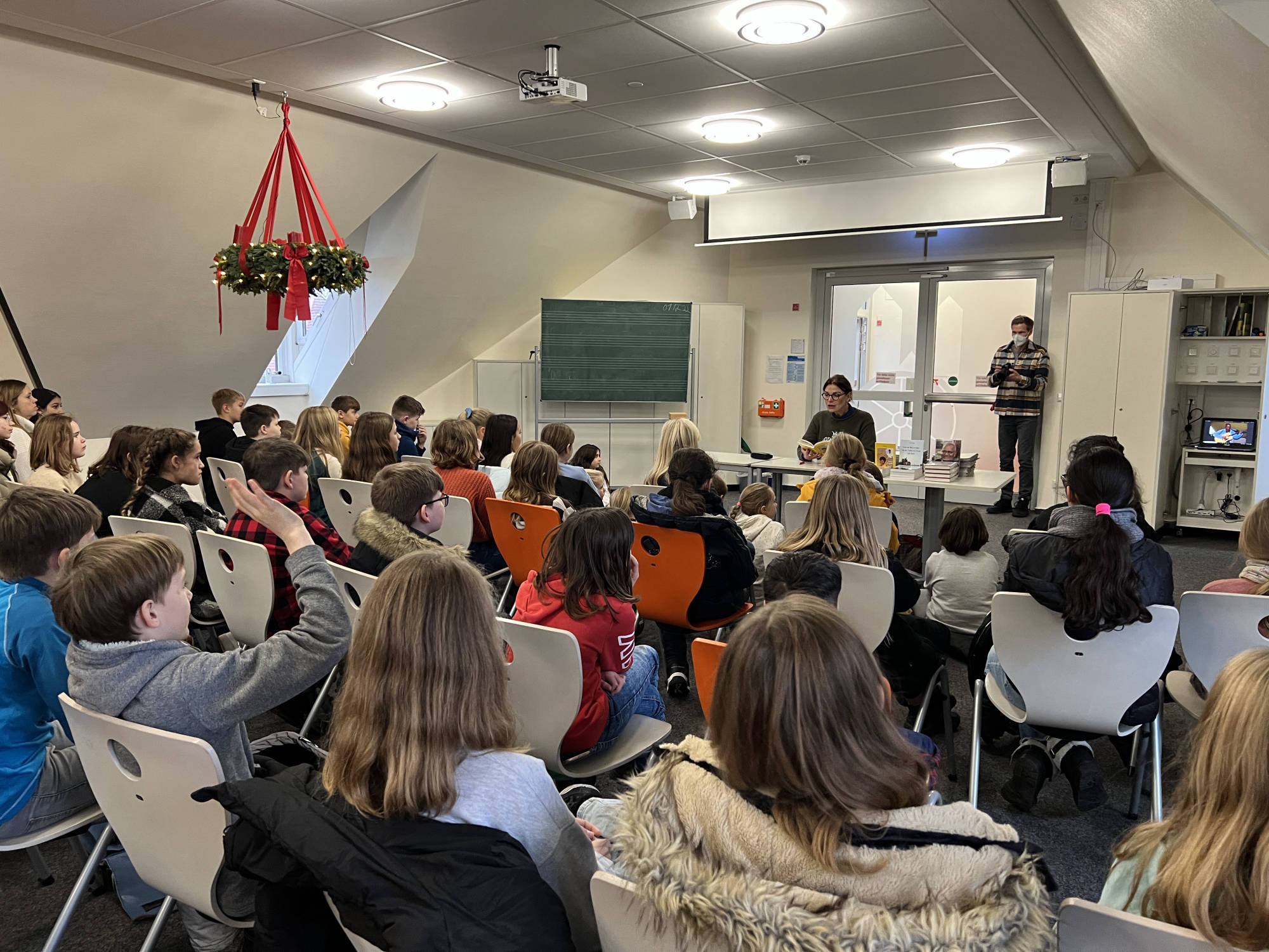 Am 2. Dezember hat uns die Autorin Simone Fischer besucht und den fünften Klassen aus ihrem Buch „Jyotis Traum“ vorgelesen.