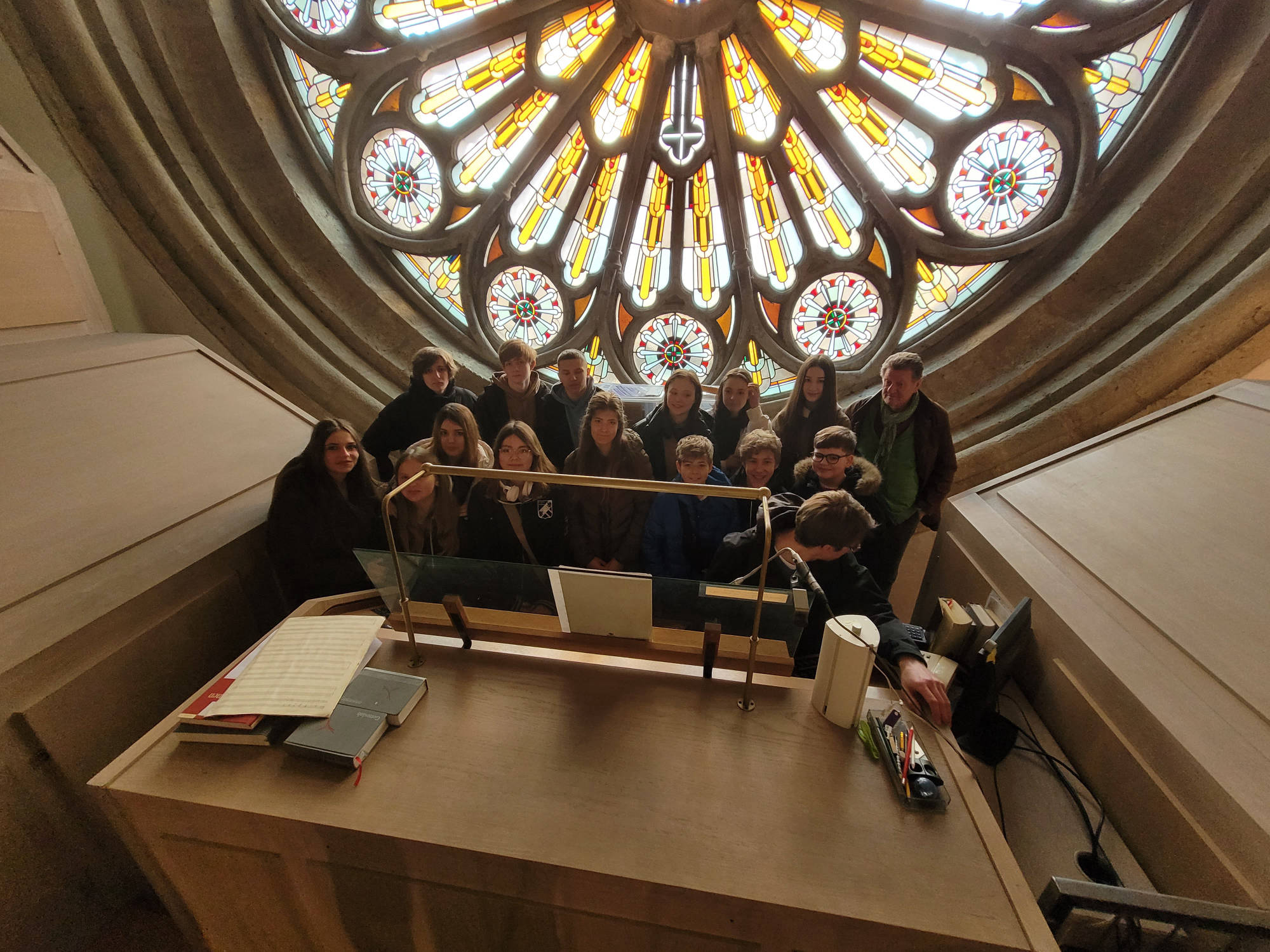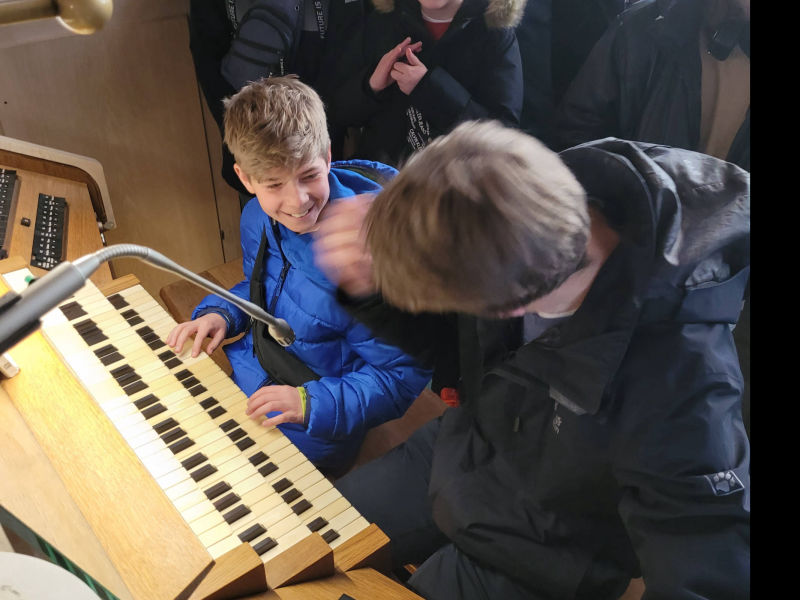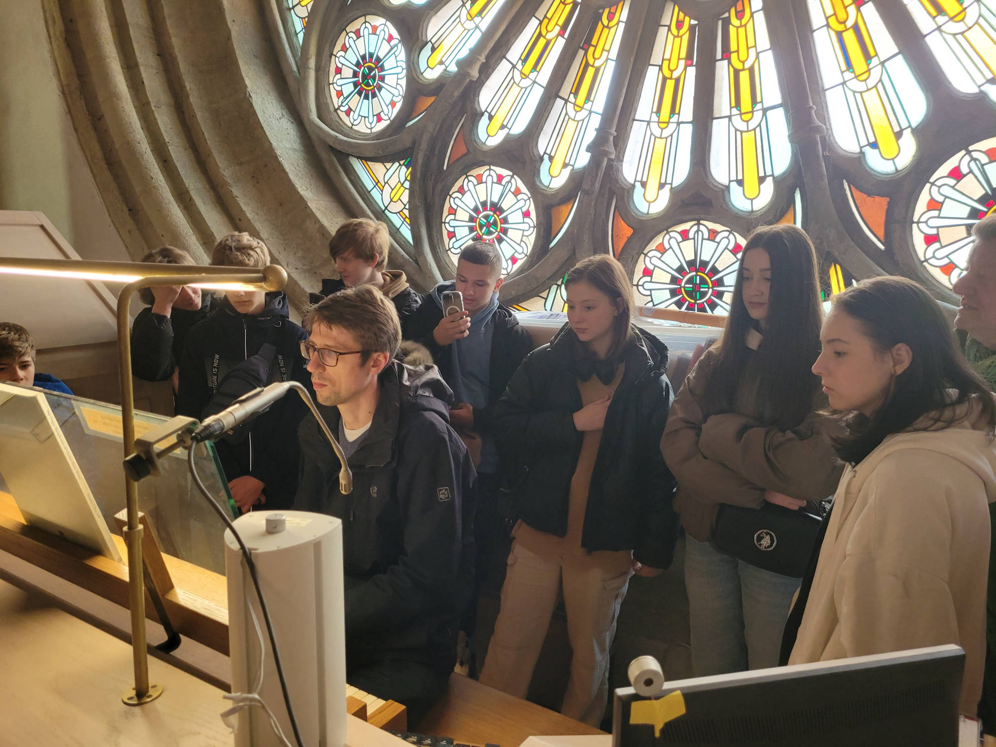 Im Dom wurden wir von Domorganist Balthasar Baumgartner mit einer französischen Symphonie empfangen und in die besondere Orgel eingeführt. Auch unsere Schüler*innen, durften auf dem 3650 Pfeifen starken Instrument spielen. Als Herr Baumgartner anschließend die ukrainische Hymne spielte, hatten alle Gänsehaut.
