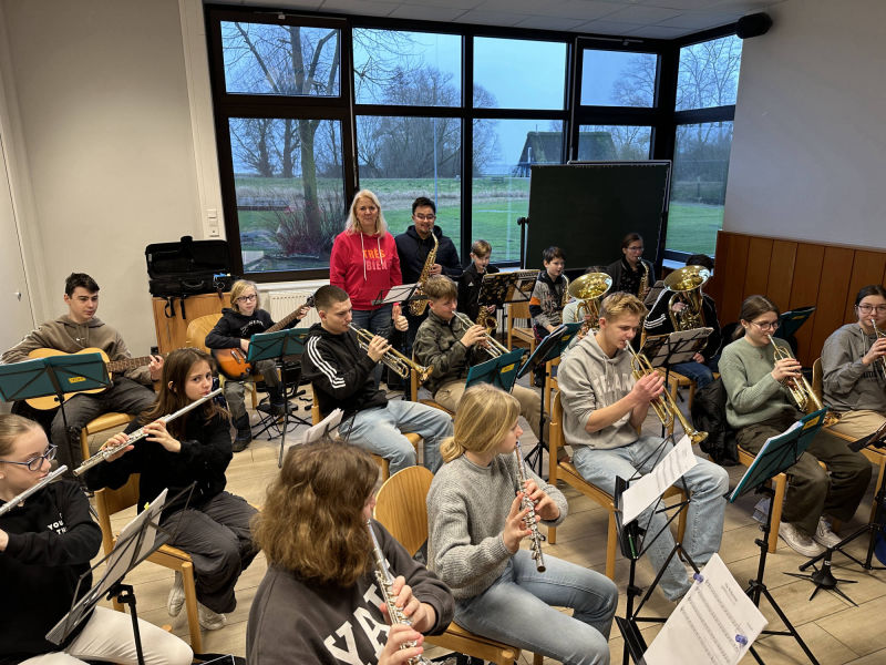 Mein Dank geht an Frau Schröer, die mit ihrem feinen Gehör das Blasorchester trainiert hat und an Herrn Wieschebrock, der die Saxophone unterstützt hat.