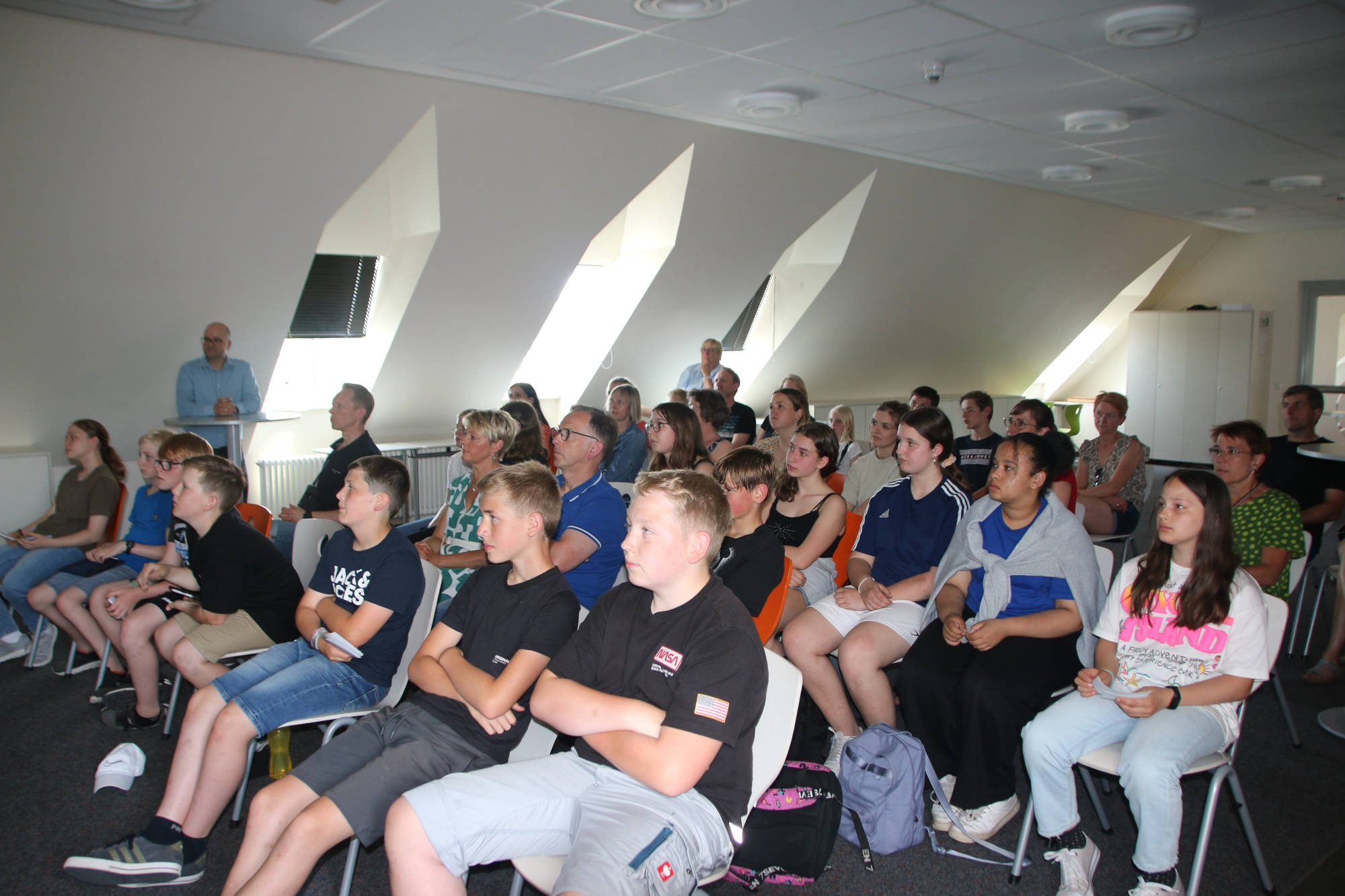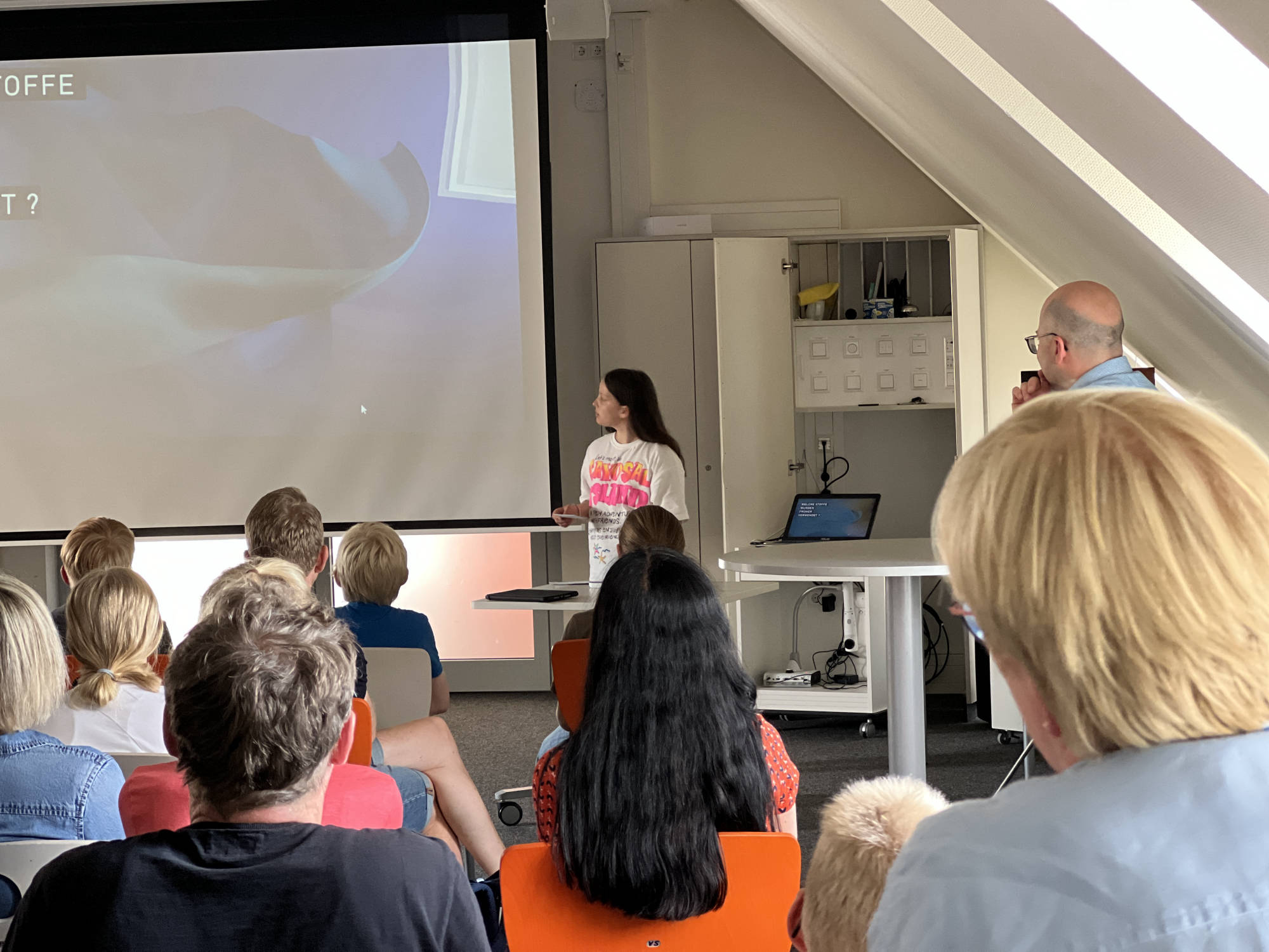 Die Schülerinnen und Schüler des Drehtürmodells stellten die Ergebnisse ihrer Forschungsarbeit zum zweiten Mal vor. Dabei konnten Lehrer, Eltern und interessierte Mitschüler erfahren, welche Arbeitsschritte für einen Zeichentrickfilm notwendig sind, wie Bergwerke aufgebaut ist oder was Exoplaneten sind.