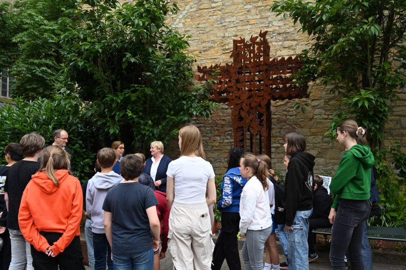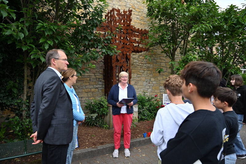 Der Verband Katholischer Religionslehrerinnen und Religionslehrer an Berufsbildenden Schulen (VKR) hat der Domschule die Hinweistafel zum Jugendkreuz überreicht.