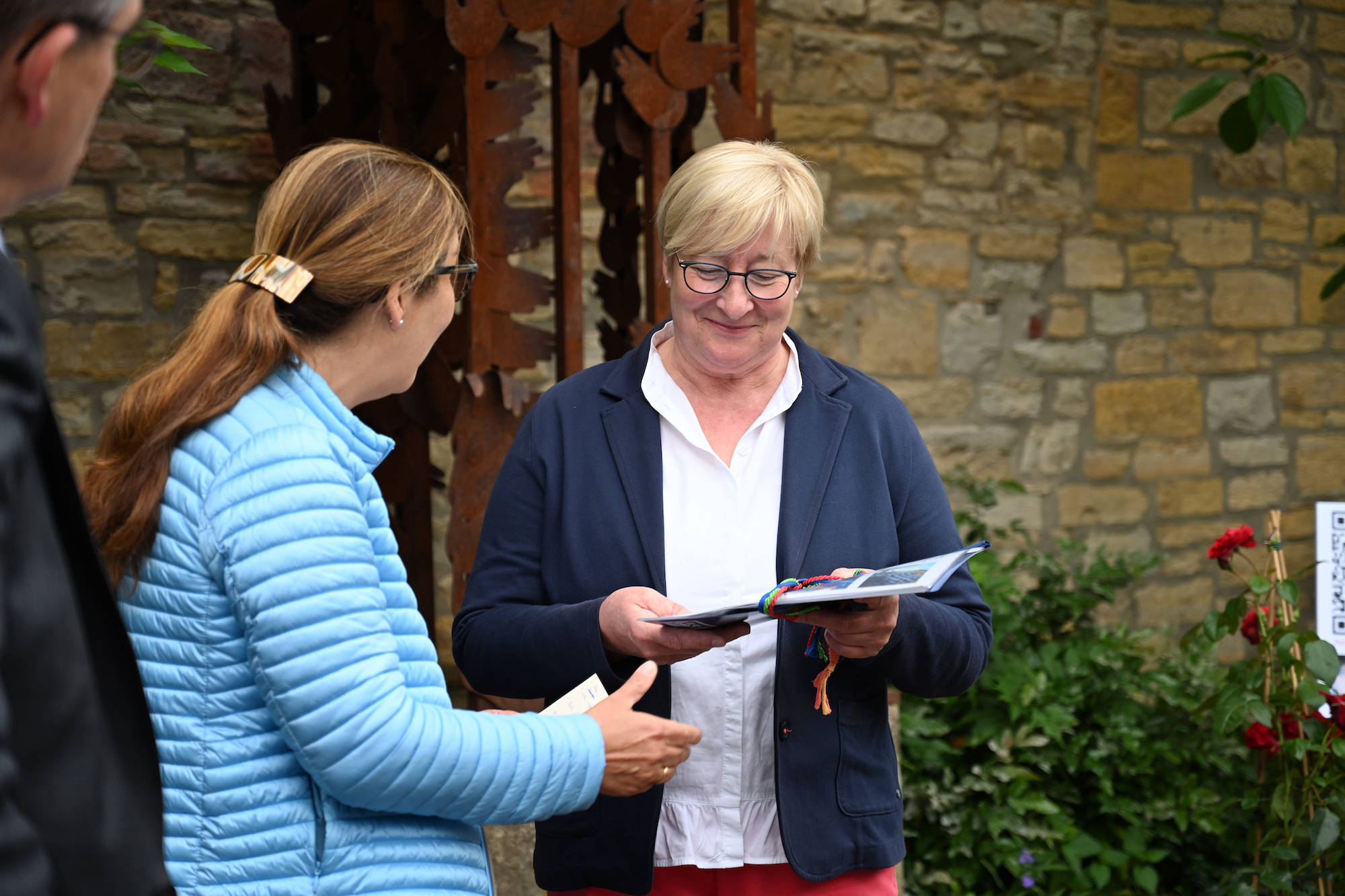 Schulleiterin Sabine Müller bedankte sich für das Hinweisschild und freut sich im kommenden Schuljahr auf die Erkundung des Multigeocaching mit den Klassen der Domschule.