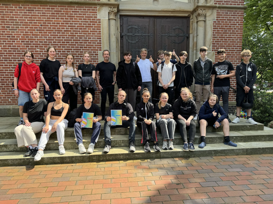 Am letzten Dienstag (28. Mai) machten sich früh morgens 18 Schülerinnen und Schüler, 2 Lehrkräfte und FSJ-lerin Jasmin auf den Weg nach Papenburg. Die Michaelschule lud zu einem Volleyballturnier ein, an dem Stiftungsschulen u. a. aus Osnabrück, Lingen, Meppen und natürlich Papenburg teilnahmen.
