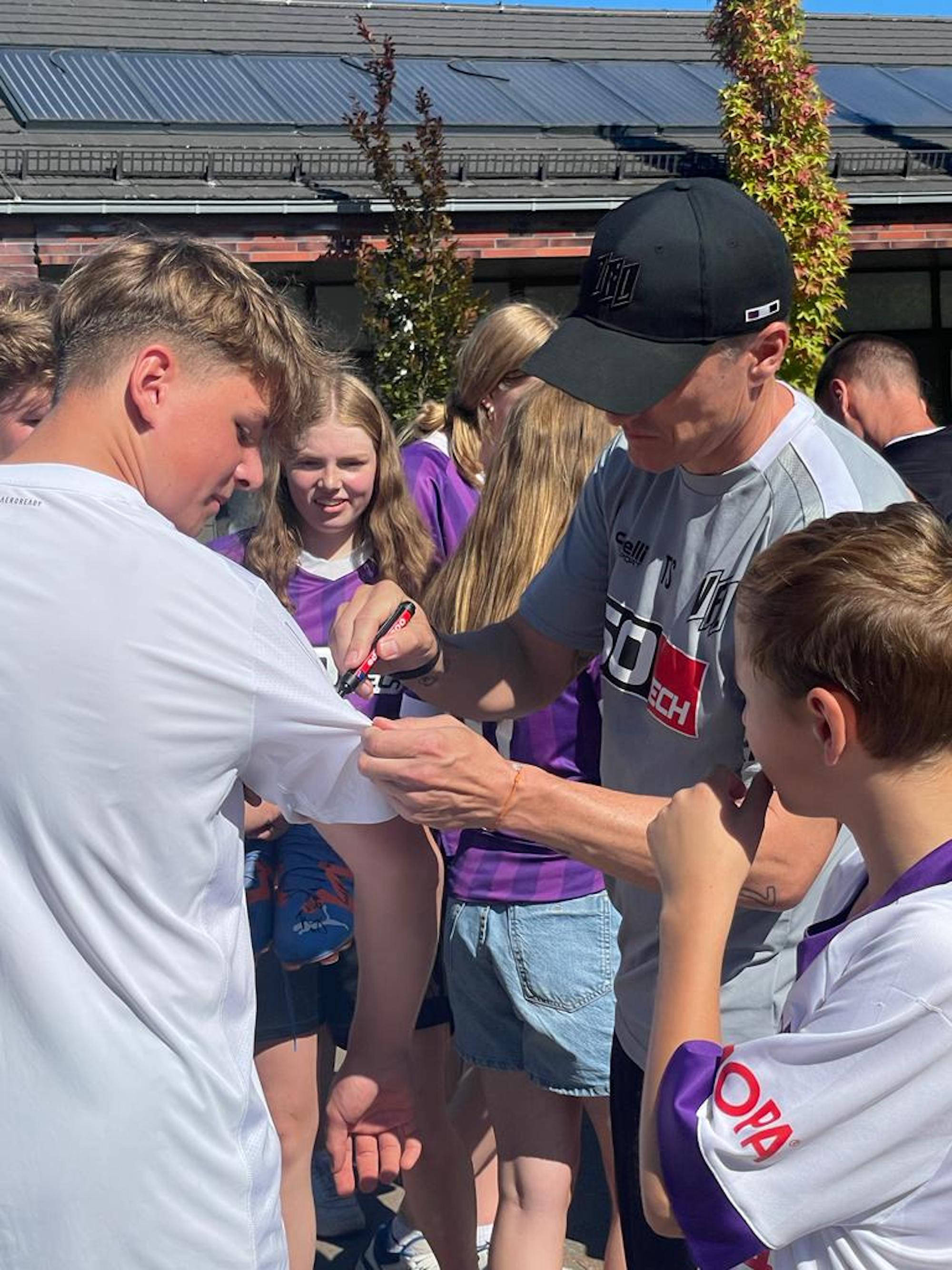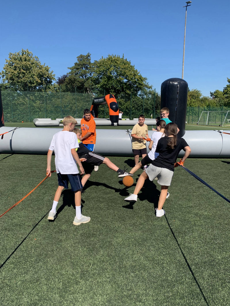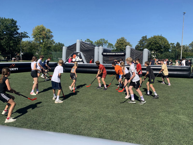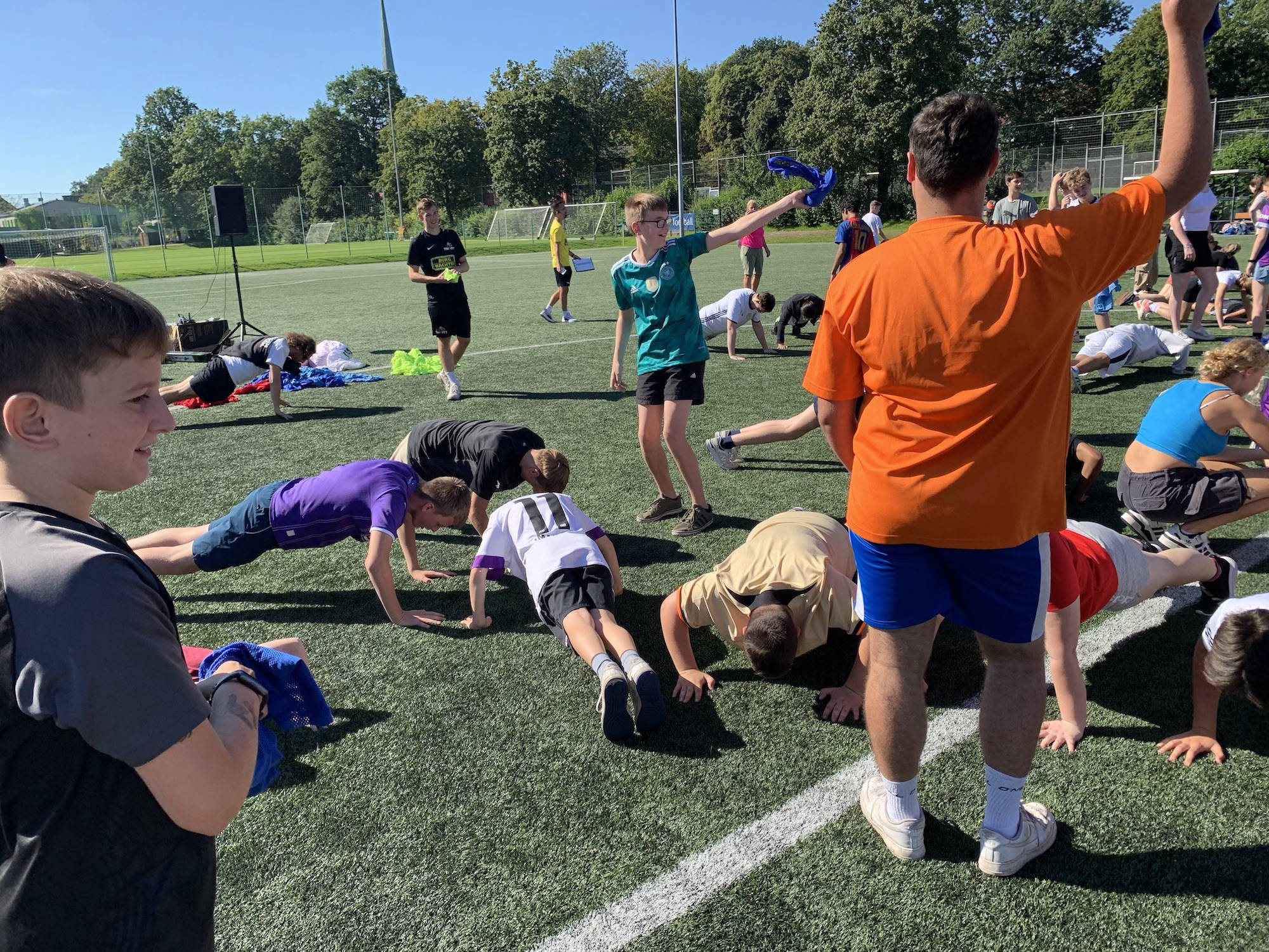 Dann wartete ein Stationsbetrieb der TRIXITT GmbH auf alle SuS. Das war eine große Herausforderung aufgrund der Temperaturen auf dem Platz. Es gab genug kalte Getränke für alle. Die SuS hatten viel Spaß und alle drei für Fairness ausgezeichneten Gruppen kamen von der Domschule. Ein unvergesslicher Tag wurde es dann noch für die großen VFL-Fans, da die Mannschaft nebenan trainierte und im Anschluss geduldig Autogramme gab- sogar auf Fußballschuhe! Verschwitzt und happy fuhren alle wieder nach Hause.