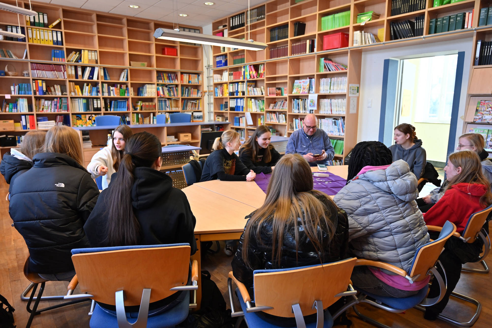 Donnerstags (natürlich nur in der Schulzeit) in der ersten großen Pause (9.20 Uhr) öffnet sich für Euch die Tür der Bibliothek. Um 9.30 Uhr beginnt ein kurzer Impuls, z.B. ein Text, ein Lied, ein Bild, o.ä. Manchmal gibt es noch eine kleine Überraschung. Damit niemand zu spät zurück in den Unterricht kommt, dauert der Impuls nicht länger als 8 Minuten, meist kürzer. Selbstverständlich darf während des Pausensnacks gegessen und getrunken werden, denn auf das Pausenbrot soll nicht verzichtet werden.