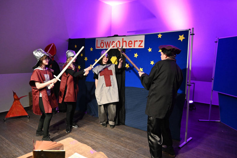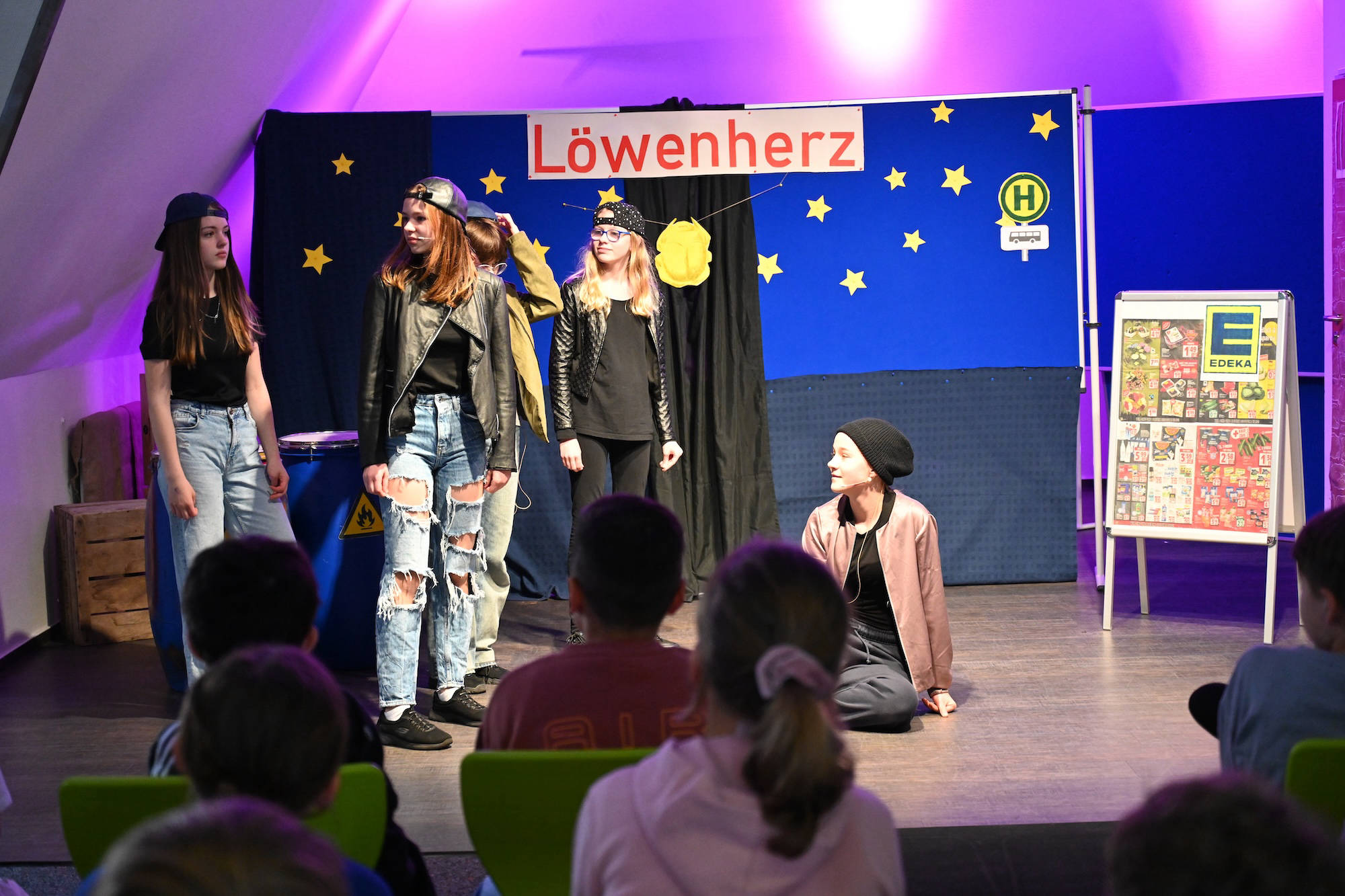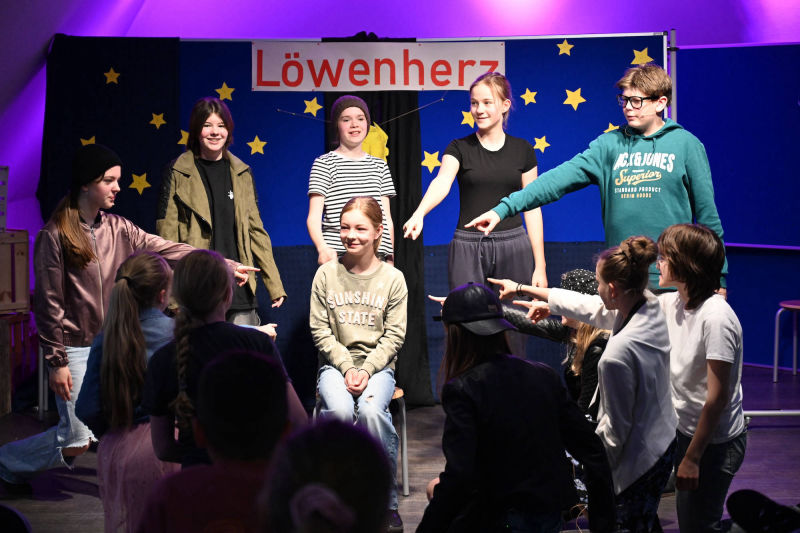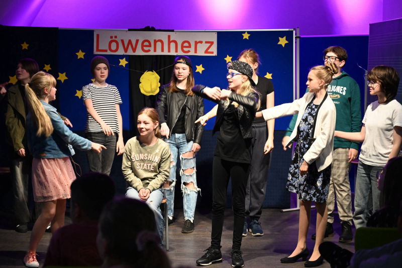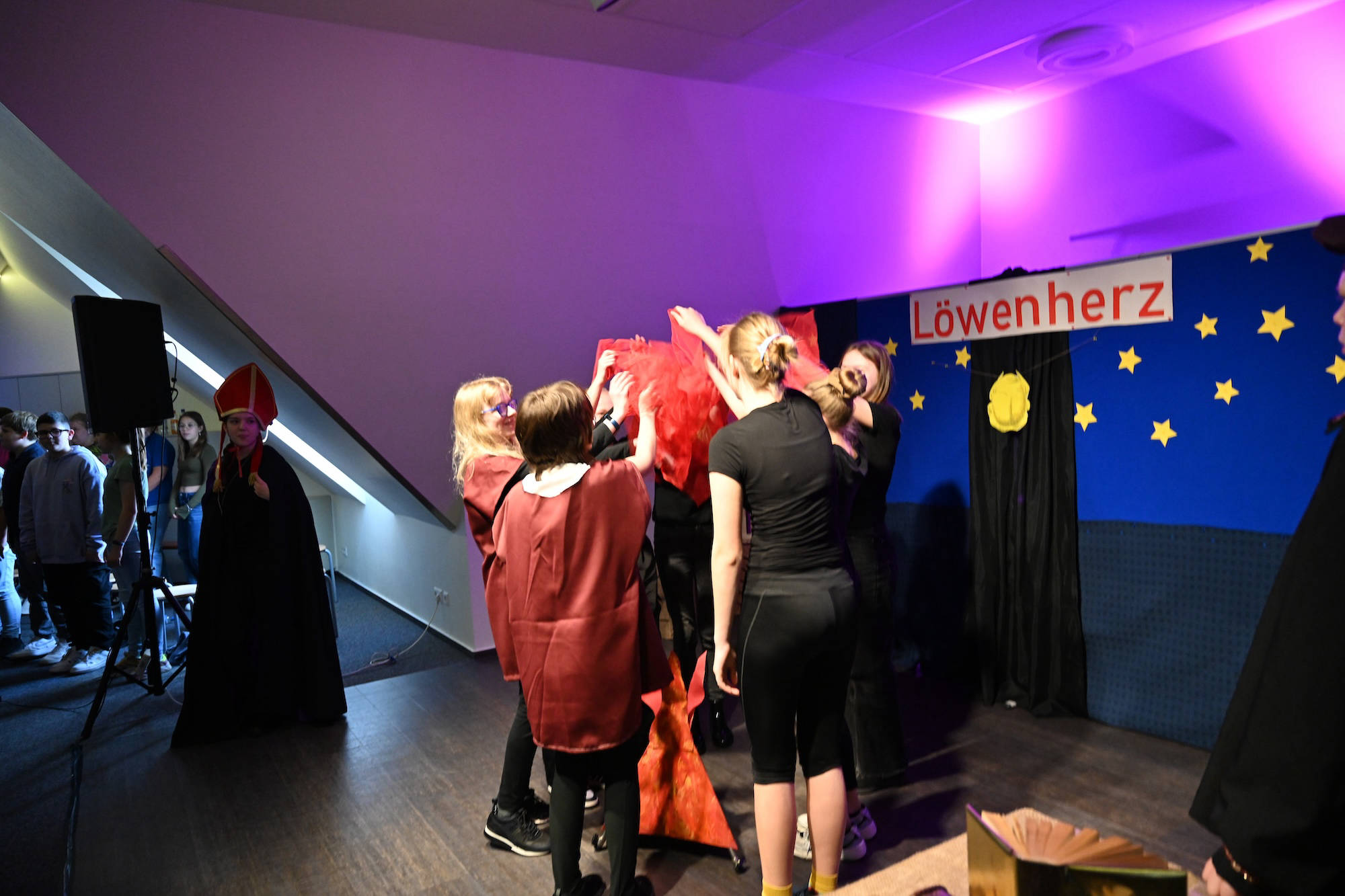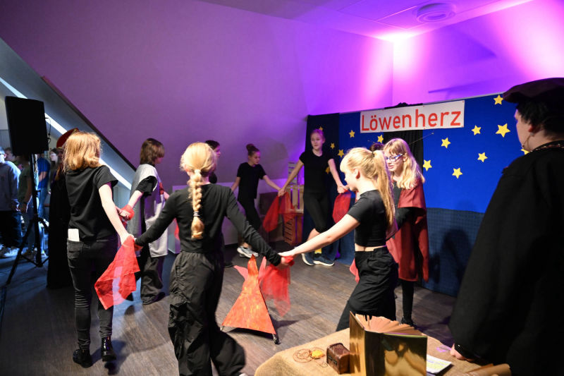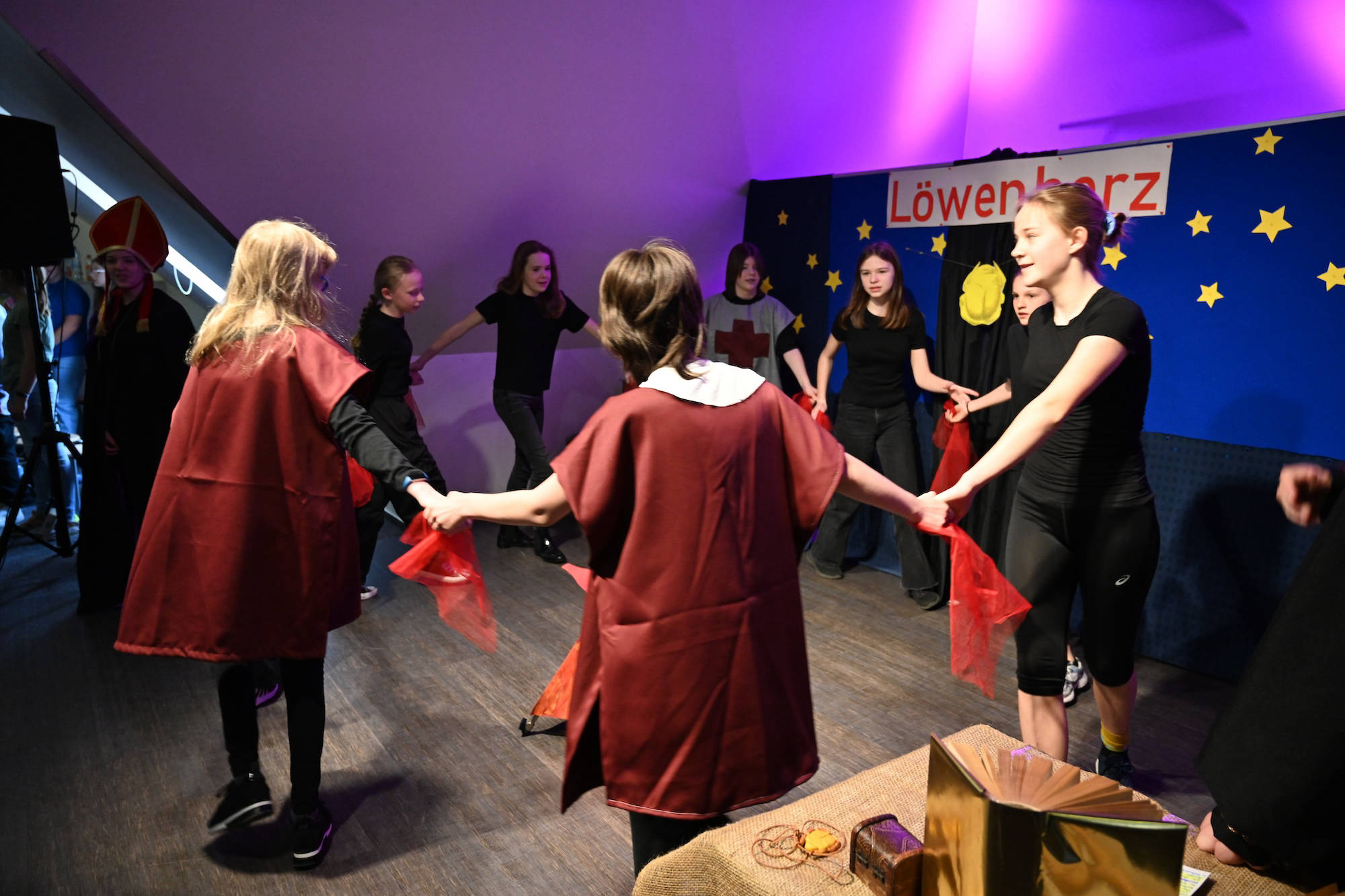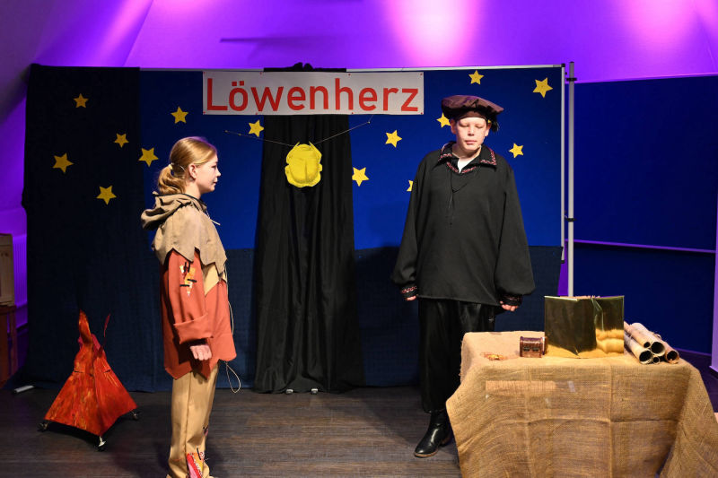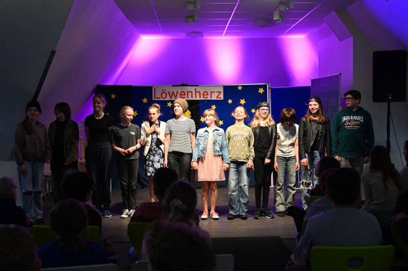 In einem gemeinsamen Projekt haben der WPK 6 Musical und der Schulchor das Musical „Löwenherz“ mit insgesamt vier Vorstellungen erfolgreich auf die Bühne gebracht. Sowohl die SuS der 5. und 6. Klassen als auch die Eltern und andere Musicalbegeisterte konnten eine gelungene Kombination aus Schauspiel und mitreißenden Musicalsongs erleben.
