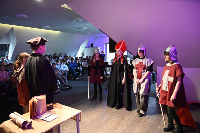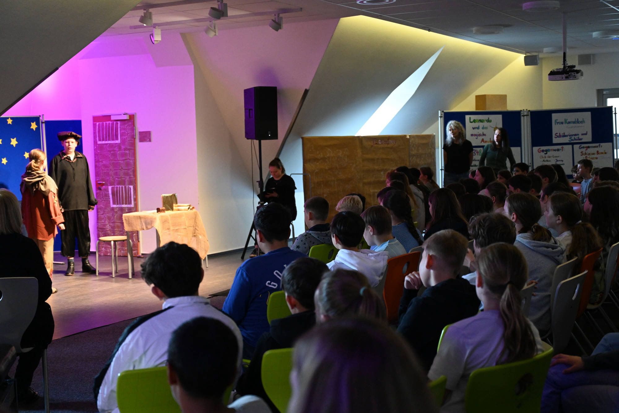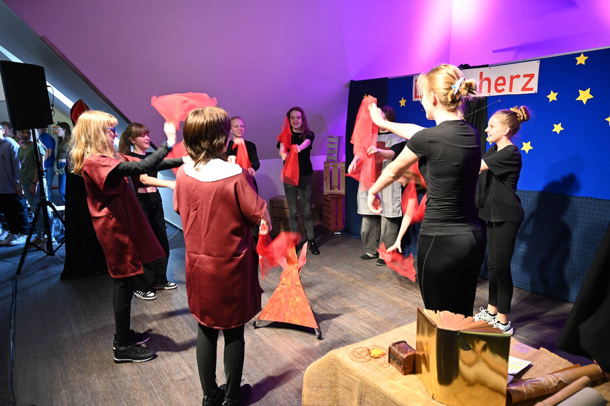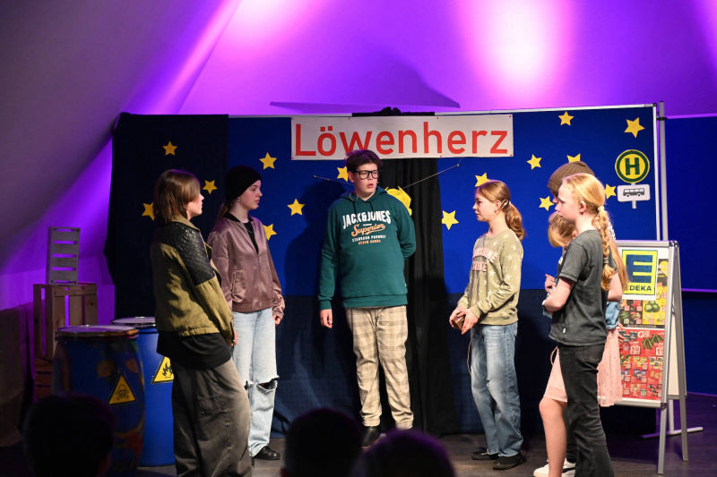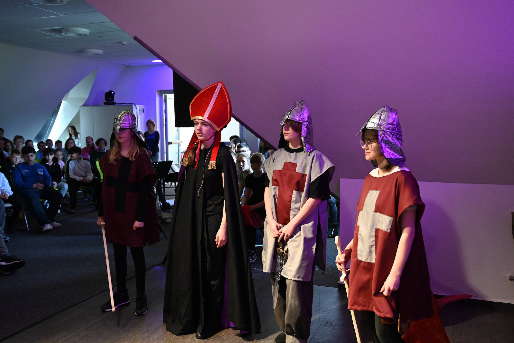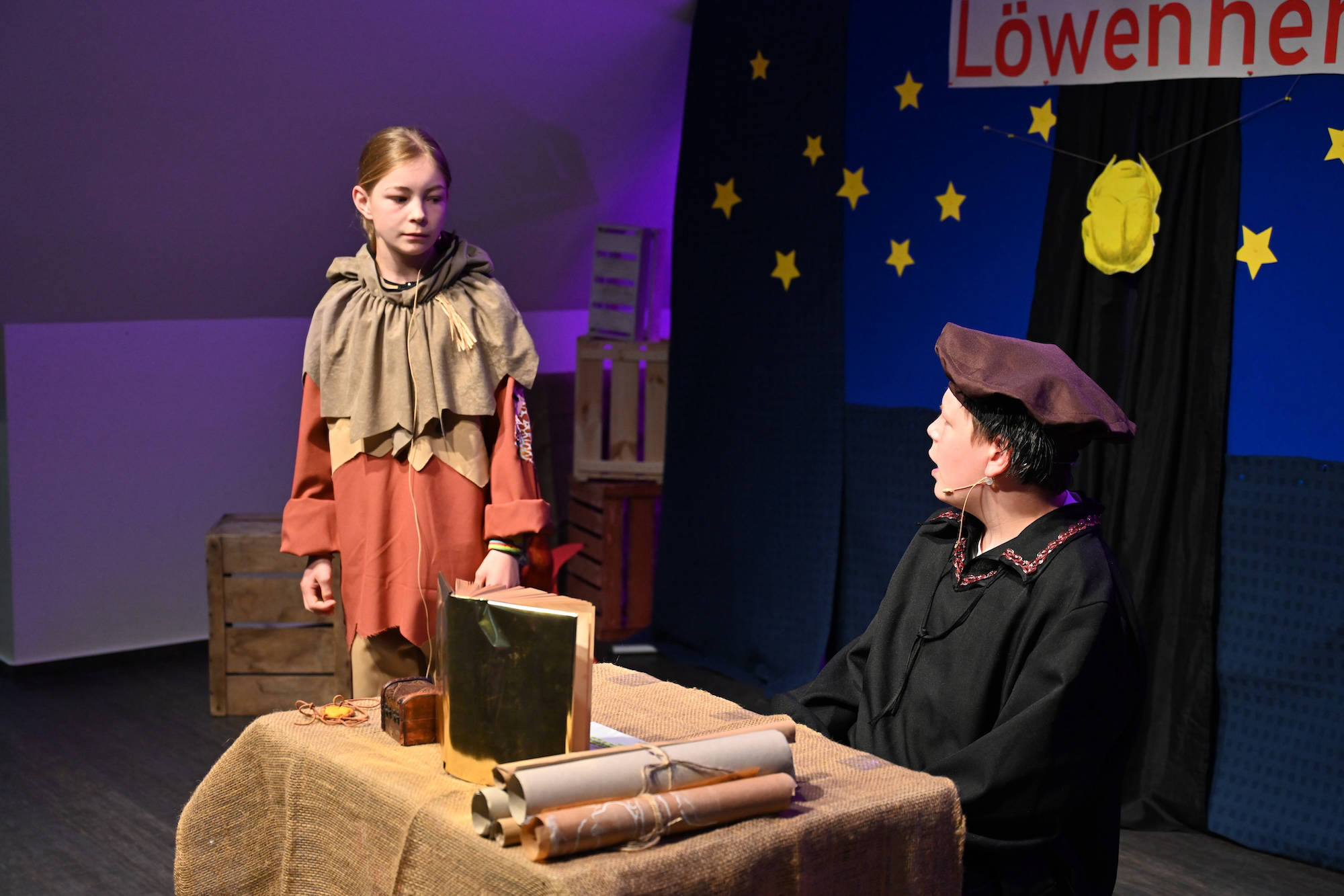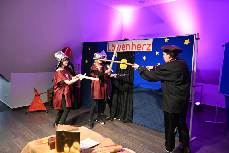In einem gemeinsamen Projekt haben der WPK 6 Musical und der Schulchor das Musical „Löwenherz“ mit insgesamt vier Vorstellungen erfolgreich auf die Bühne gebracht. Sowohl die SuS der 5. und 6. Klassen als auch die Eltern und andere Musicalbegeisterte konnten eine gelungene Kombination aus Schauspiel und mitreißenden Musicalsongs erleben.