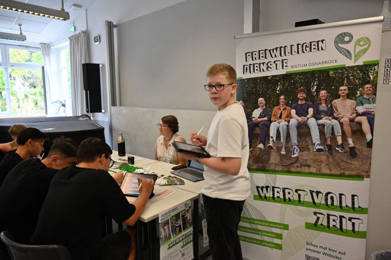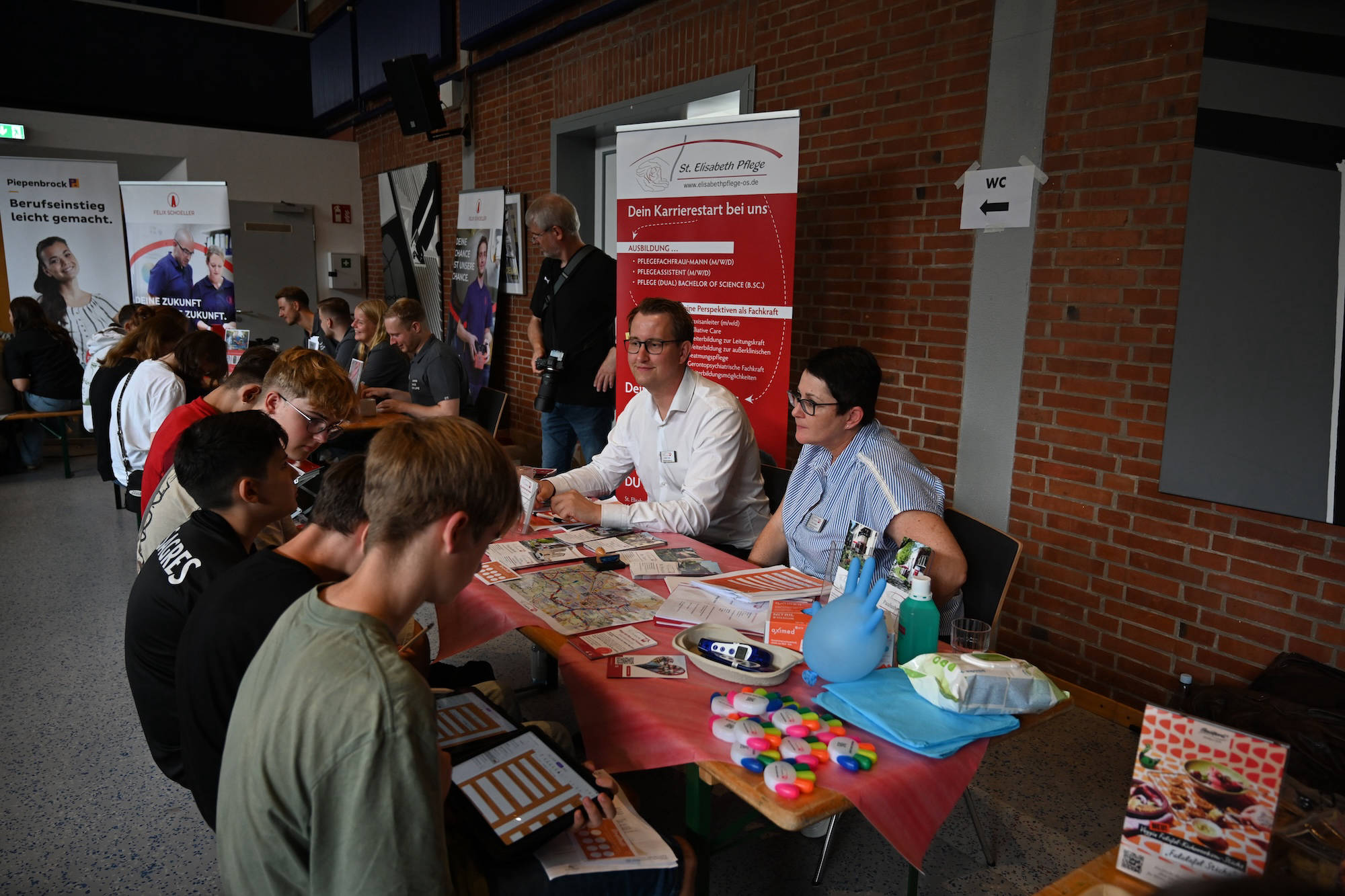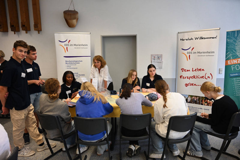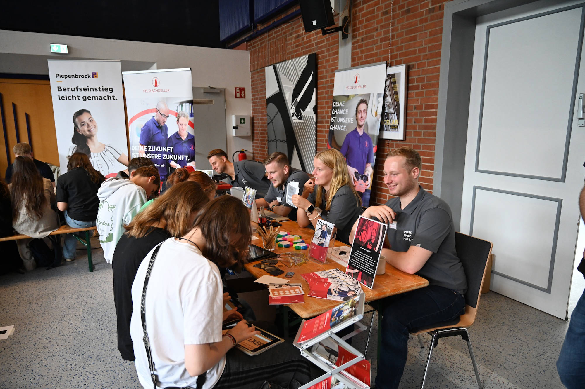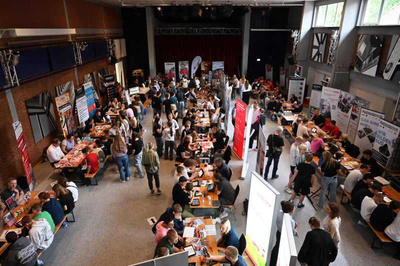 Am 9. Berufsorientierungstag an der Domschule wurde den Schülerinnen und Schülern des 8., 9. und 10. Jahrgangs eine wertvolle Gelegenheit angeboten, sich umfassend über verschiedene Ausbildungsberufe und Karrierewege zu informieren. 30 Unternehmen - darunter auch Berufsschulen - präsentierten sich und stellten ihre vielfältigen Ausbildungsmöglichkeiten vor, was zu einem intensiven Austausch führte. Die Veranstaltung förderte das Verständnis der Schülerinnen für unterschiedliche Branchen und half ihnen, erste Kontakte z.B. für die bevorstehenden Praktika zu knüpfen. Insgesamt war der Tag ein wichtiger Schritt in Richtung berufliche Zukunft.