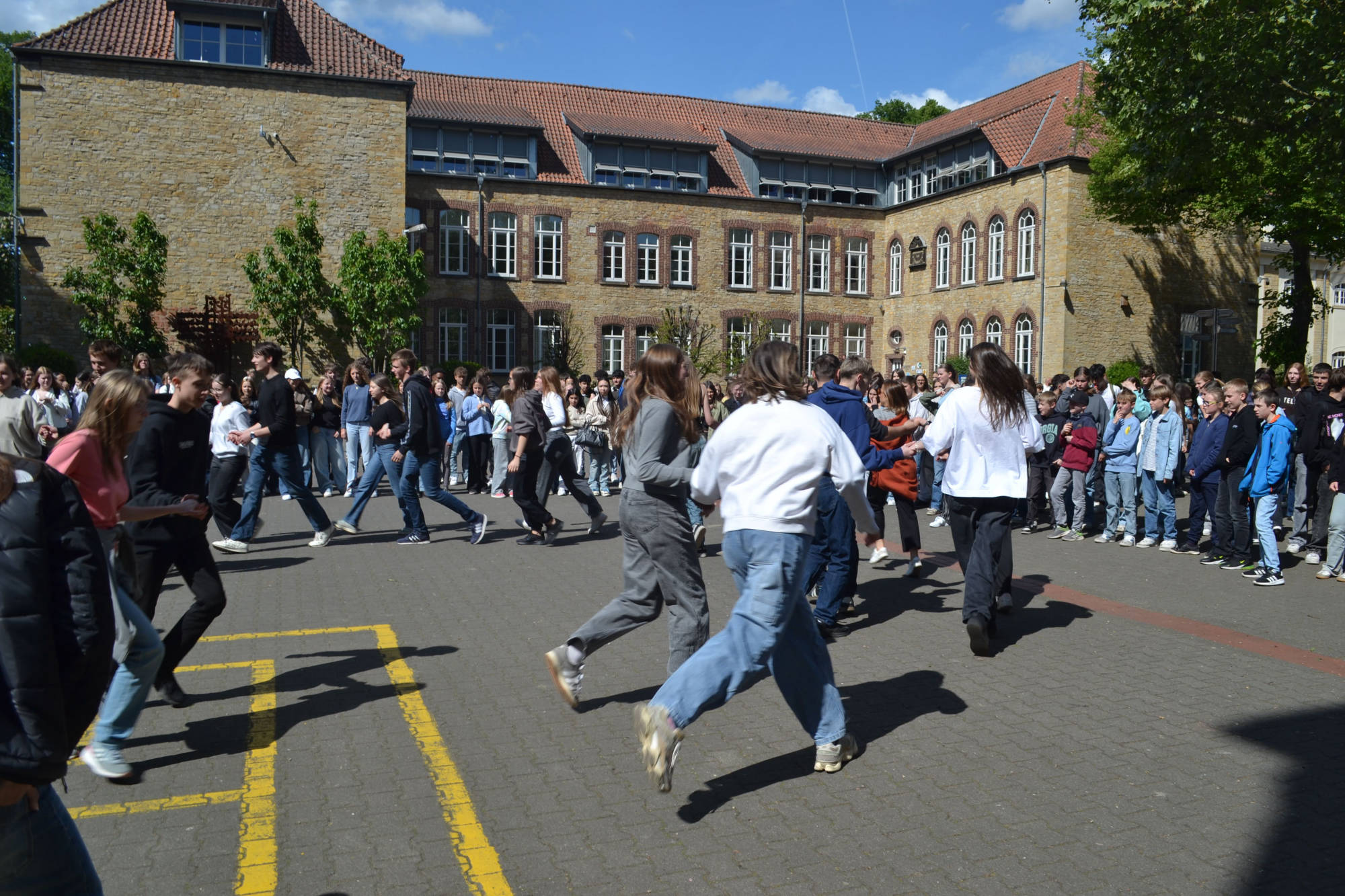 Vom 05.05. bis zum 09.05.2025 besuchten elf polnische Schüler*innen aus Warschau die Domschule. Zum dritten Mal organisierte Frau Herbers mit Unterstützung von Herrn Schedler die deutsch-polnische Begegnung. Nicht nur die Schüler*innen waren auf das Treffen gespannt, auch die Lehrer*innen freuten sich auf das Wiedersehen.