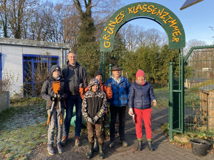 Am Samstag Vormittag trafen sich freiwillige Helfer der Domschulgemeinschaft, um im grünen Klassenzimmer und vor den Hochbeeten die Hecken und Sträucher zurückzuschneiden.