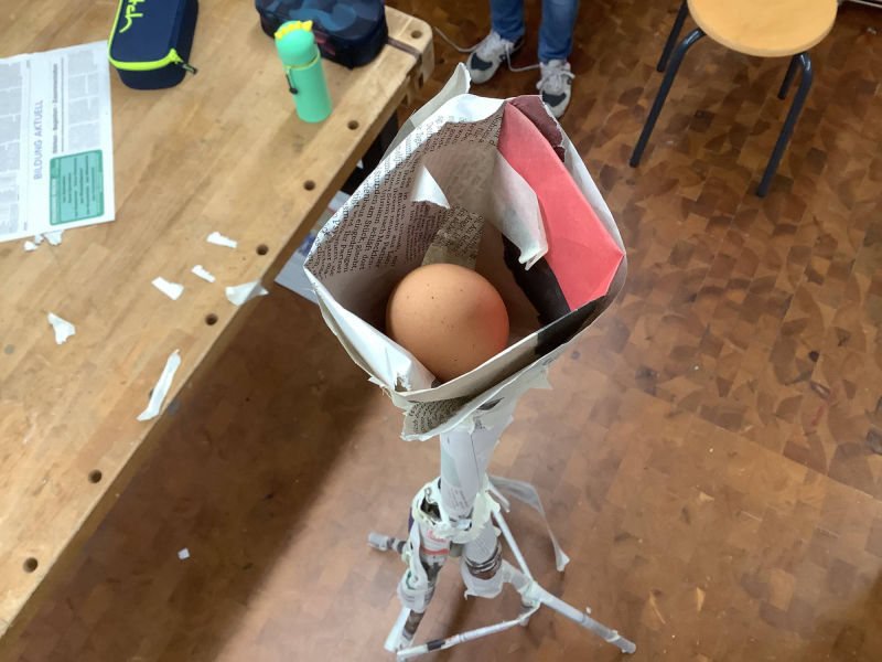 Wer baut den höchsten Zeitungsturm, der ein rohes Ei trägt?