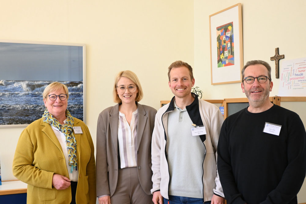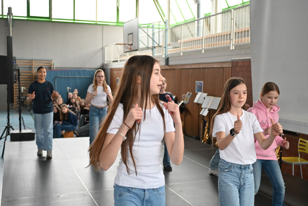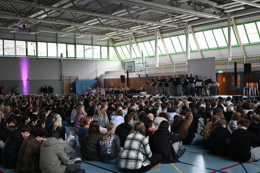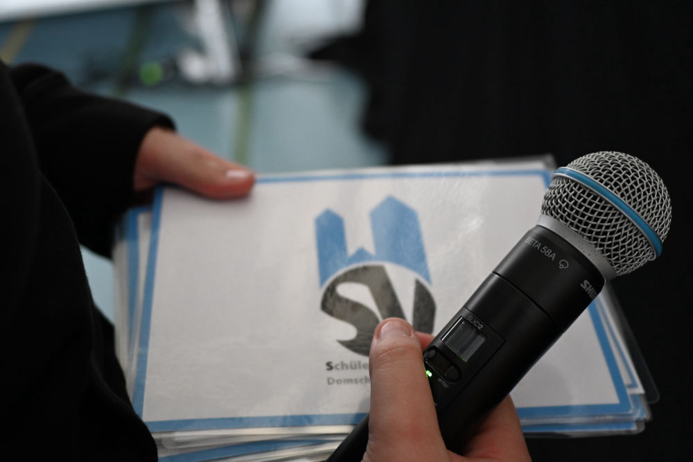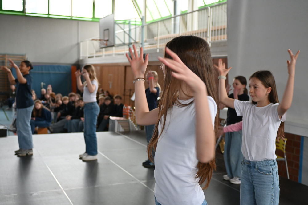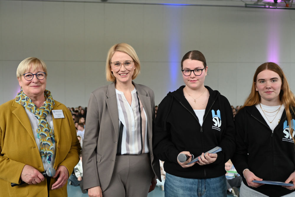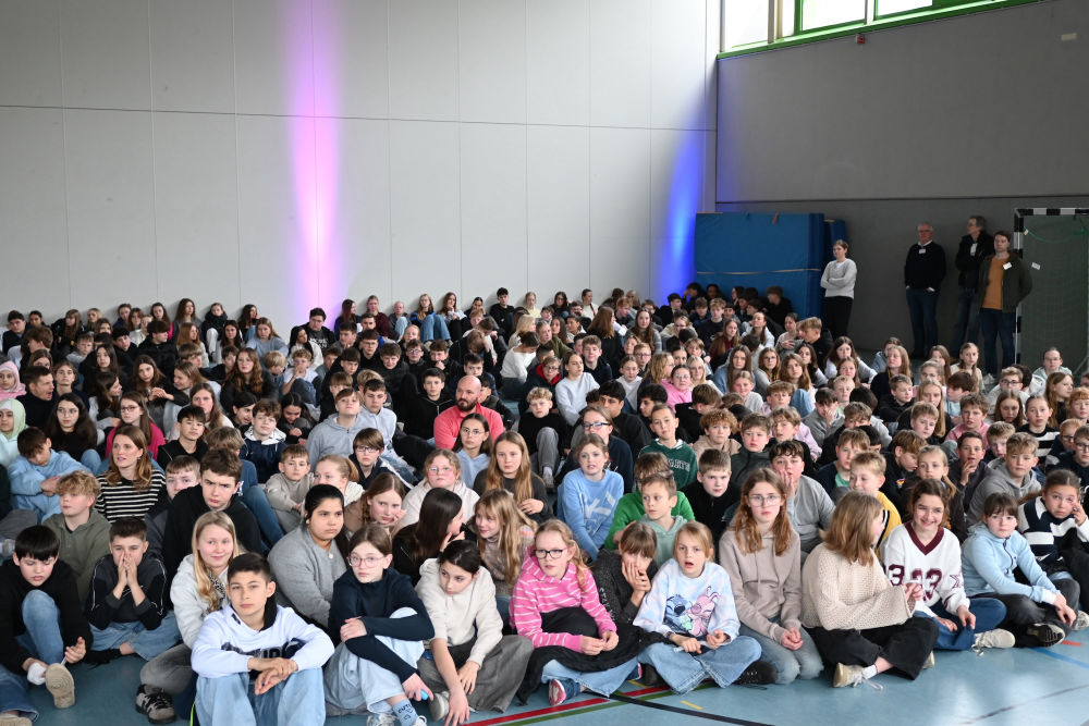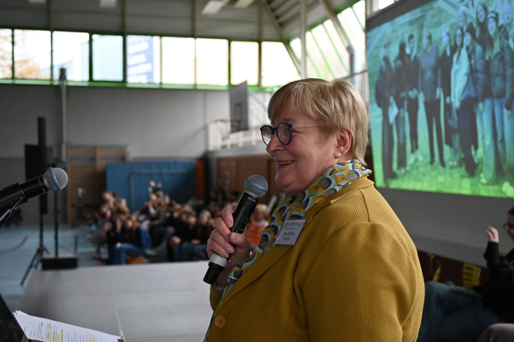 Am 11. März war Oberbürgermeisterin Katharina Pötter zu Besuch in der Domschule. Nach einem Rundgang durch die Gebäude und einem Gespräch mit Schülerinnen, Schülern, Kolleginnen und Kollegen sowie der Schulleitung stellte sie sich den Fragen der Schülerschaft in der Vollversammlung in der Turnhalle.