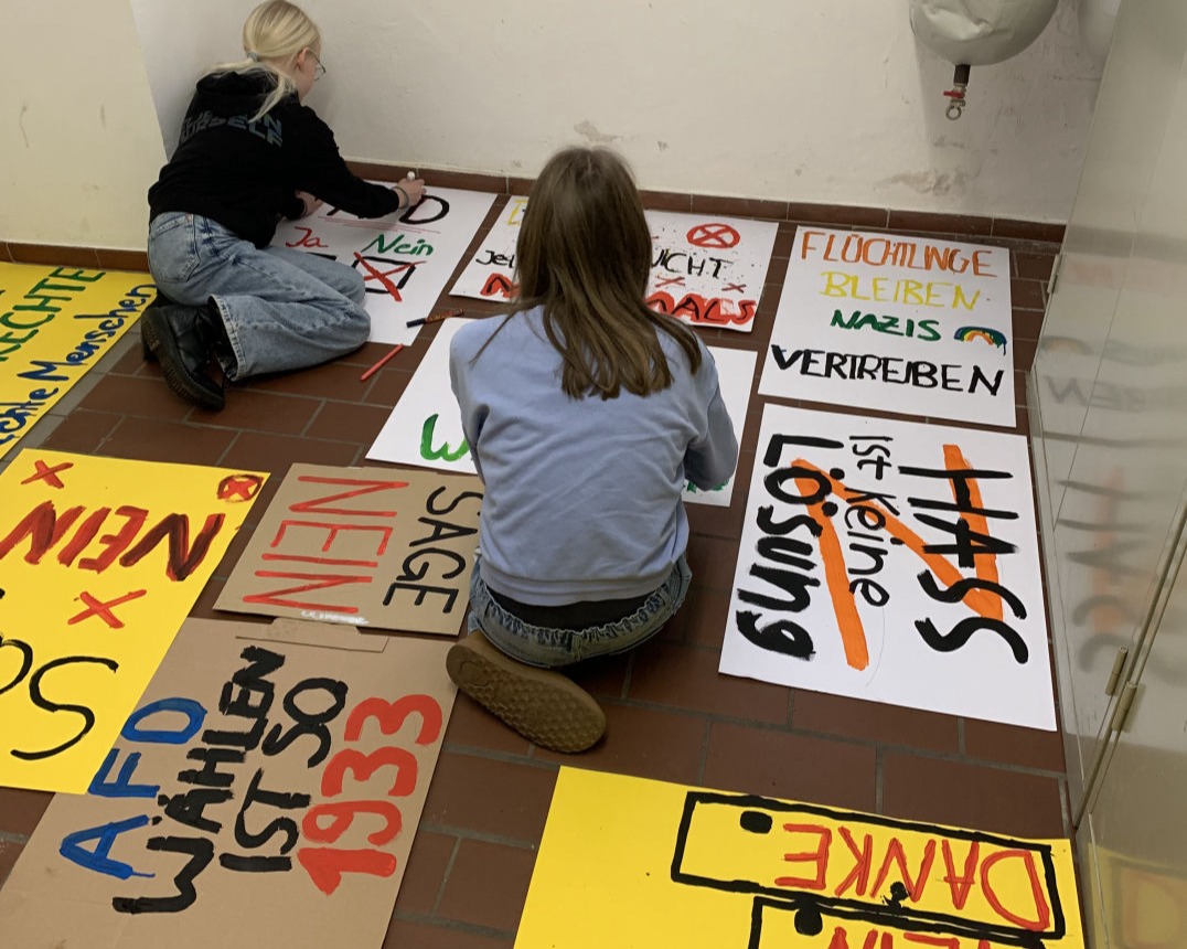 Mehrere Osnabrücker Schulen haben dazu aufgerufen, sich an der Demonstration gegen die AfD am Samstag zu beteiligen. Für die Schülervertretung (SV) der Domschule war klar, dass sie aktiv werden wollen: So sind am Donnerstag rund 30 Plakate entstanden.