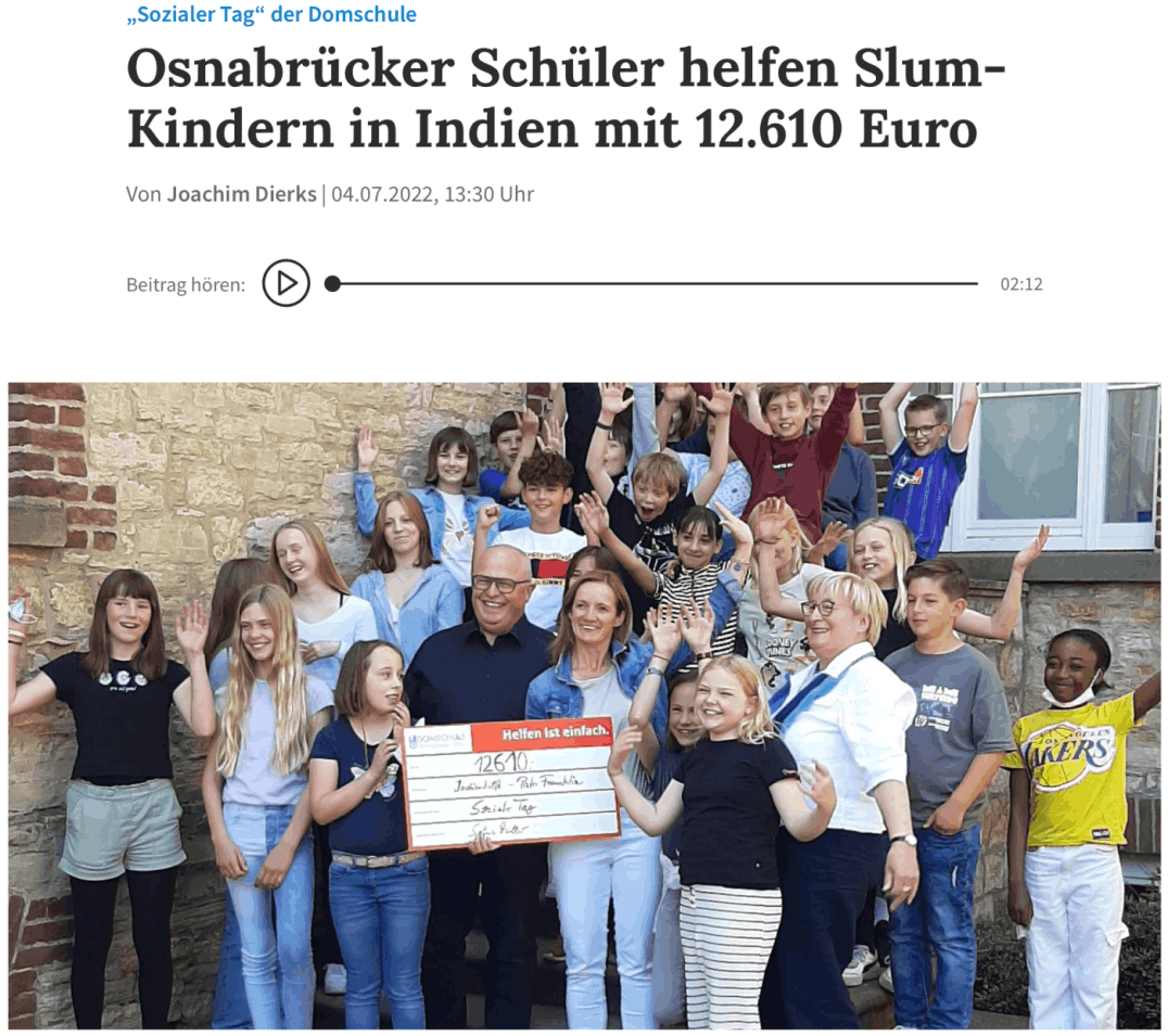 Seit über 40 Jahren unterstützt die Osnabrücker Domschule die Arbeit von Pater Franklin in Indien. Mit vielen Aktionen halten sie die Hilfe für Kinder aus Elendsvierteln aufrecht. In einem Jugendbuch wird nun darüber berichtet.