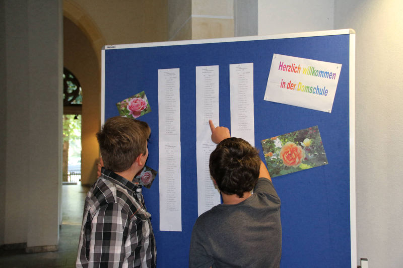 Die Jahrgänge in der Domschule sind sechszügig, d.h. auch in Jahrgang 5 werden etwa 150 Kinder aufgenommen. Damit alle Schülerinnen und Schüler einen vergleichbaren Einstieg erleben, wird der Übergang von der Grundschule zur Domschule gemeinsam vom Team der Klassenlehrerinnen und Klassenlehrer des 5. Jahrgangs vorbereitet. Das hat darüber hinaus den Vorteil, dass diese Gruppe von Lehrern sich als Jahrgangsteam versteht. Jeder kann in die bestehende Grundstruktur des Übergangs seine Ideen einbringen und mitgestalten. So ergänzen sich auch die Erfahrungen der älteren Kollegen mit den neuen Elementen der jüngeren von Anfang an. Das so gestaltete Miteinander erleichtert Absprachen, Austausch oder Teamarbeit im weiteren Verlauf der Schuljahre.