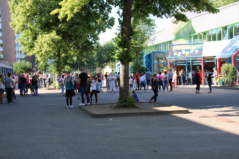 Die Schülerinnen und Schüler lernen sich gegenseitig und auch Klassenlehrer und Co-Pilot während dieser Zeit im Klassenraum spielerisch kennen. Nach etwa einer Stunde kommen die Paten aus den höheren Klassen (s.4.) in die jeweiligen Klassenräume, stellen sich vor und führen anschließend die Kinder über das Schulgelände und durch die Gebäude. Während dieses Rundganges haben nun wiederum Klassenlehrer und Co-Pilot die Gelegenheit, sich in der Cafeteria mit „ihren“ Eltern zu unterhalten und Fragen zu beantworten. Abschließend werden die „Neuen“ von ihren Paten in die Cafeteria zu ihren Eltern gebracht. Neben dem Kennenlernen bietet dieser Tag den Lehrern auch die Möglichkeit, noch die eine oder andere Frage zu klären oder Dinge zu regeln, damit der Schulanfang nach den Ferien reibungslos beginnen kann. Ein aufregender und ereignisreicher Tag für alle Beteiligten.