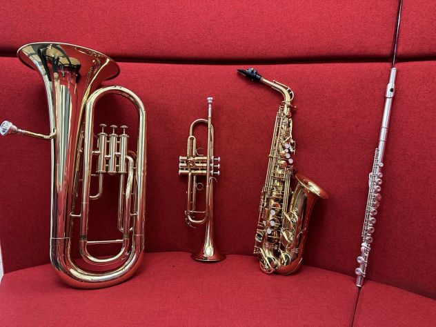 Wir, die 18 Instrumente des Blasorchesters, sind frisch gewaschen und repariert zurück in der Schule und warten auf den Einsatz!!!!! Hoffentlich dürfen wir bald mal gespielt werden, wir würden uns freuen!!