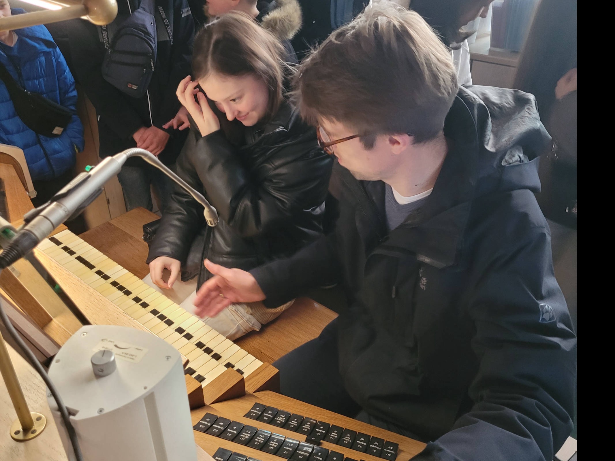 Im Dom wurden wir von Domorganist Balthasar Baumgartner mit einer französischen Symphonie empfangen und in die besondere Orgel eingeführt. Auch unsere Schüler*innen, durften auf dem 3650 Pfeifen starken Instrument spielen. Als Herr Baumgartner anschließend die ukrainische Hymne spielte, hatten alle Gänsehaut.