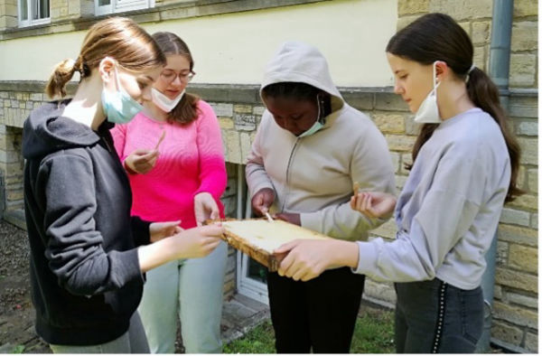 Das Bienenprojekt wird mit dem "Schulimker" Golo Martin auf dem Schulgelände durchgeführt. Es handelt sich hierbei um einen innerstädtischen Standort, der durch die Vielzahl von Linden-Bäumen in unmittelbarer Schulnähe besticht. Die Bienen "ernten" die Linden für eine reiche Honigernte. Als nächstes Projekt in dieser wertvollen Zusammenarbeit steht eine mögliche Honigvermarktung von Golo Martin auf unserem jährlichen Ernte-Dank-Markt (nächster Termin: 23. September 2022) auf unserer Agenda.