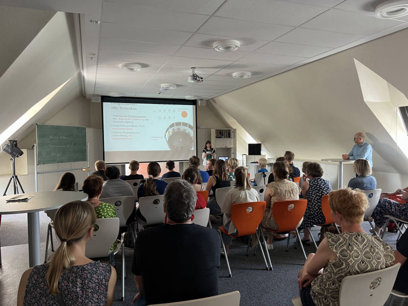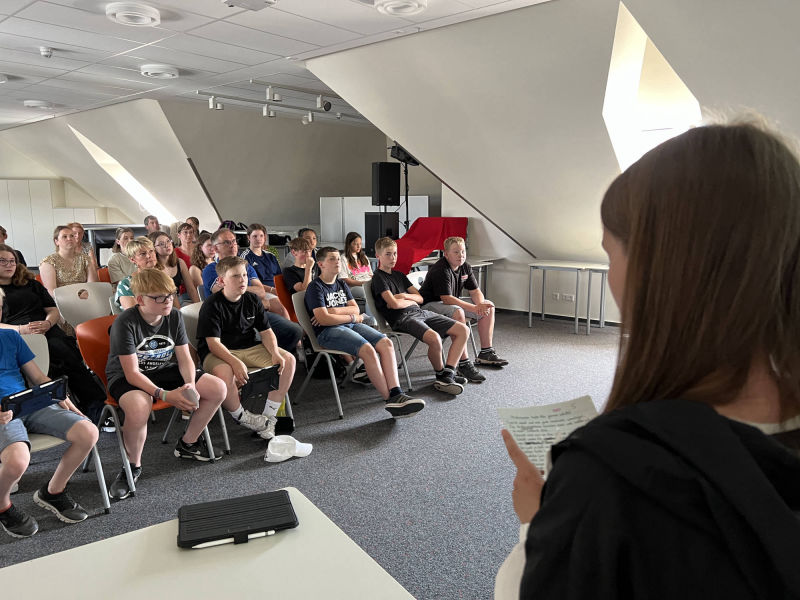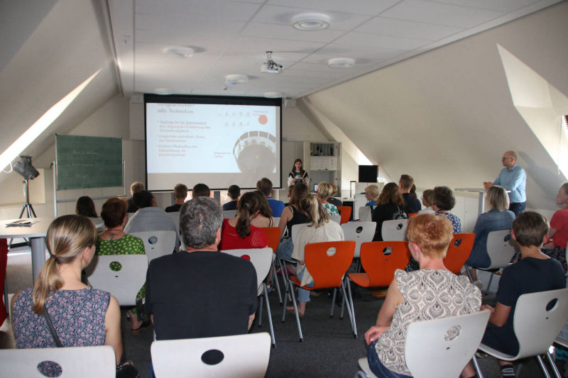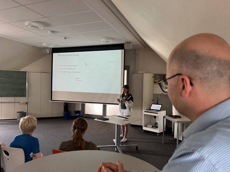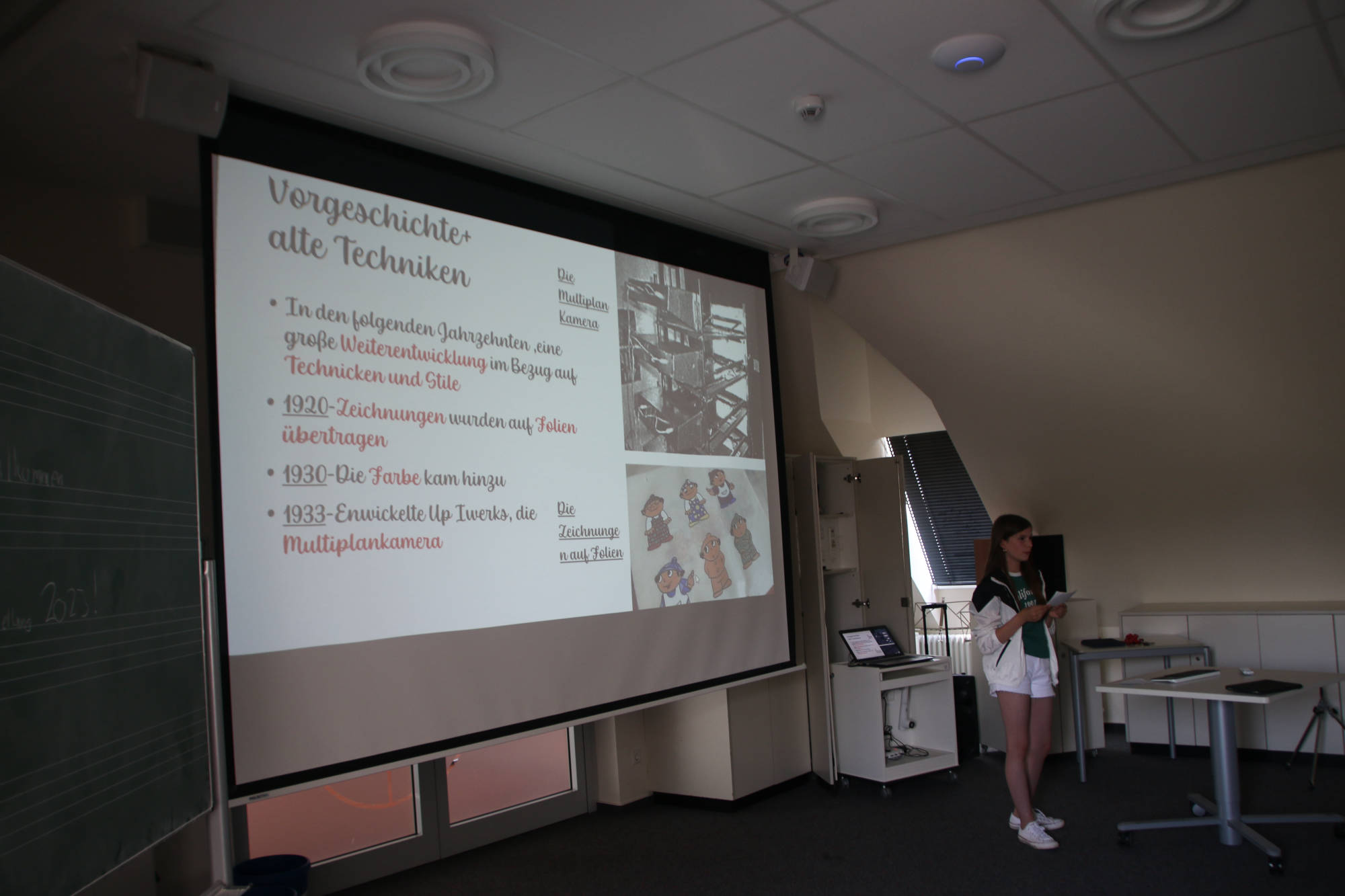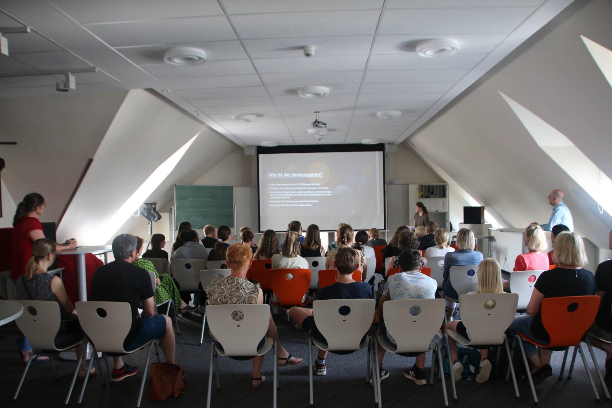 Die Schülerinnen und Schüler des Drehtürmodells stellten die Ergebnisse ihrer Forschungsarbeit zum zweiten Mal vor. Dabei konnten Lehrer, Eltern und interessierte Mitschüler erfahren, welche Arbeitsschritte für einen Zeichentrickfilm notwendig sind, wie Bergwerke aufgebaut ist oder was Exoplaneten sind.