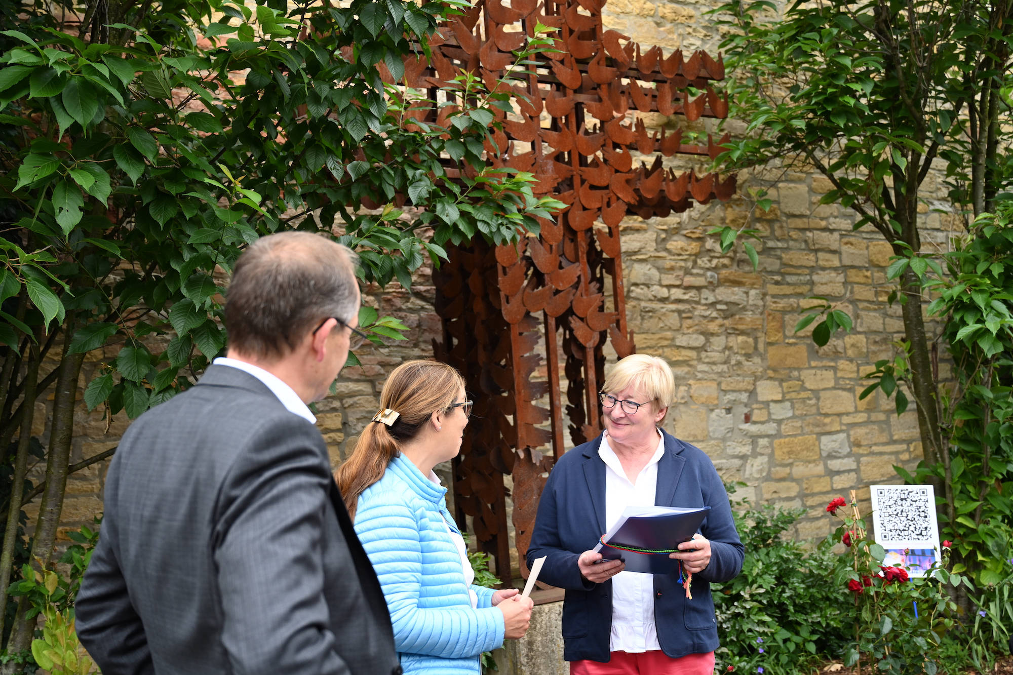 Schulleiterin Sabine Müller bedankte sich für das Hinweisschild und freut sich im kommenden Schuljahr auf die Erkundung des Multigeocaching mit den Klassen der Domschule.