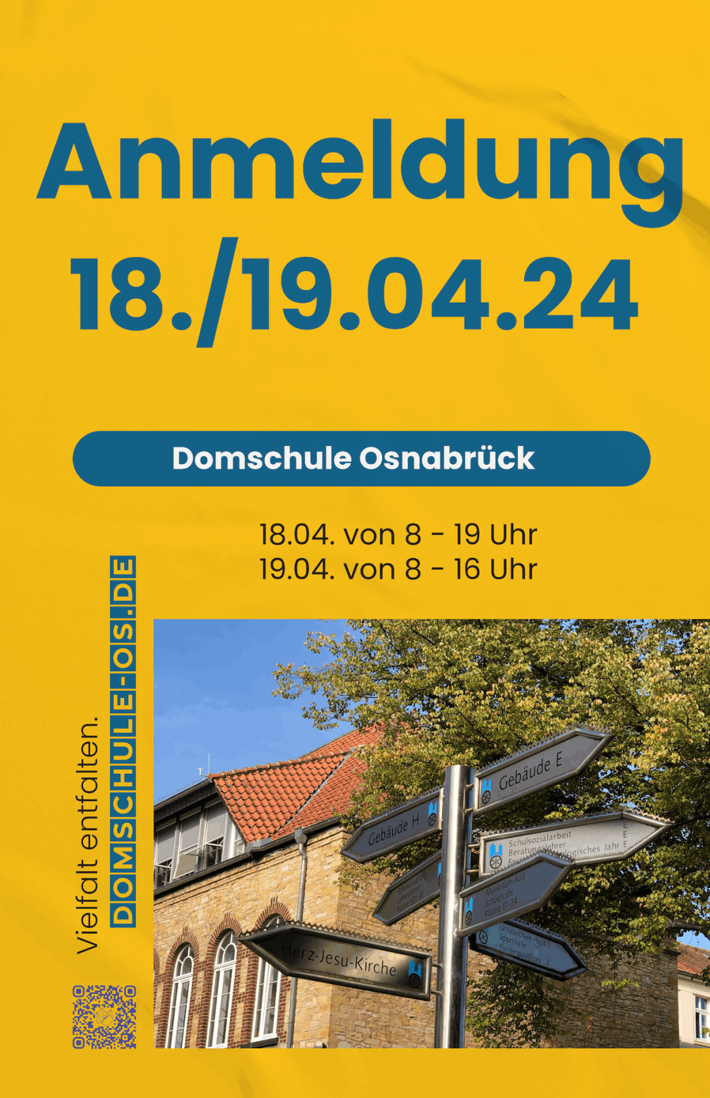 Am 11.04.2024 findet an der Domschule kein Unterricht statt, sodass sich alle Schüler*innen engagieren können, ohne den Unterricht zu verpassen. Wichtig ist nur, dass Sie den Arbeitsvertrag, den Sie von Ihrem Kind erhalten, ausfüllen und bis zum 08.04.2024 wieder in der Schule abgeben. Dieser Vertrag dient als Entschuldigung für die Schule und ist gleichzeitig die offizielle Anmeldung zum Sozialen Tag.