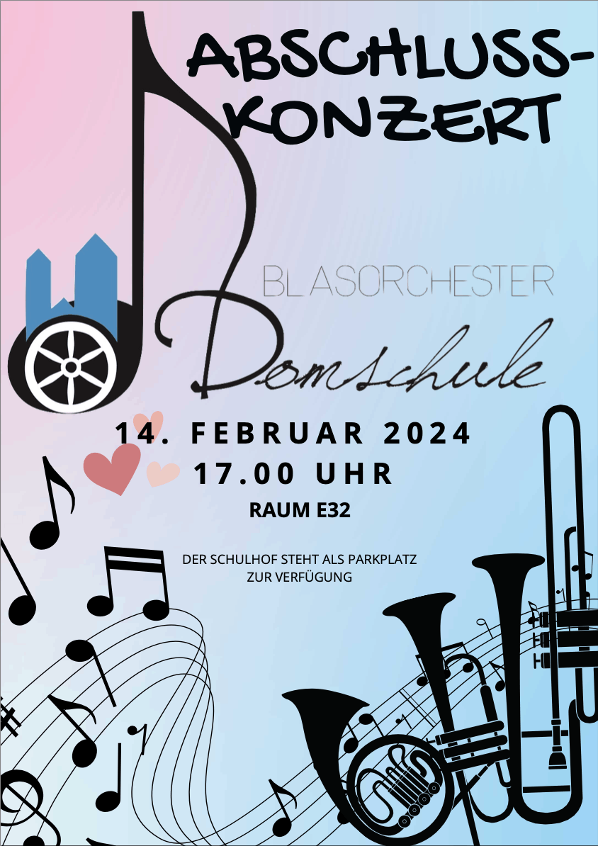 Unter diesem Motto bieten wir ab Februar 2024 für Kinder der 5. und 6. Klassen wieder einen neuen Durchgang für das Blasorchester an der Domschule an. Neue Anmeldungen können bis zum 6.12.23 abgegeben werden.