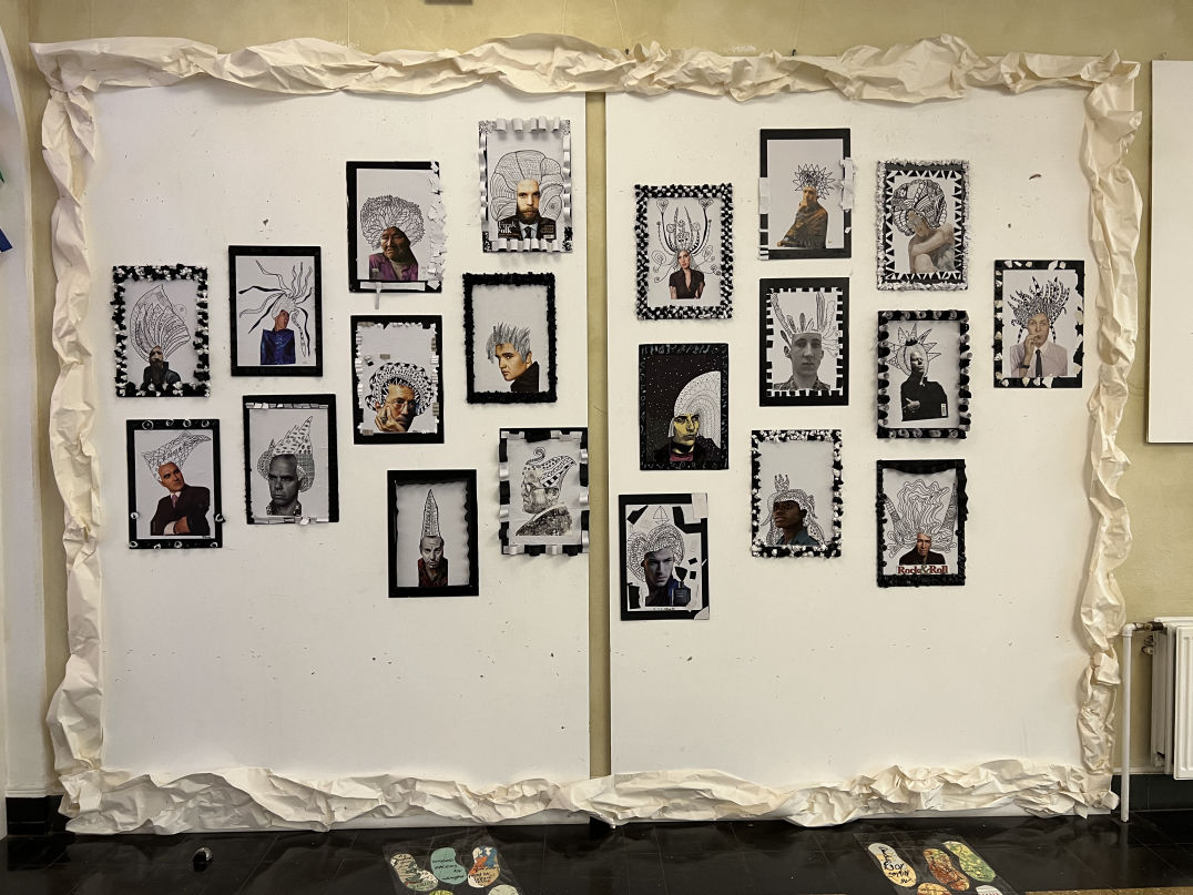 In den Arbeiten der 7B ergibt sich aus dem Gesicht und einer darauf aufbauenden „Kopfbedeckung“ ein neues Gesamtwerk.