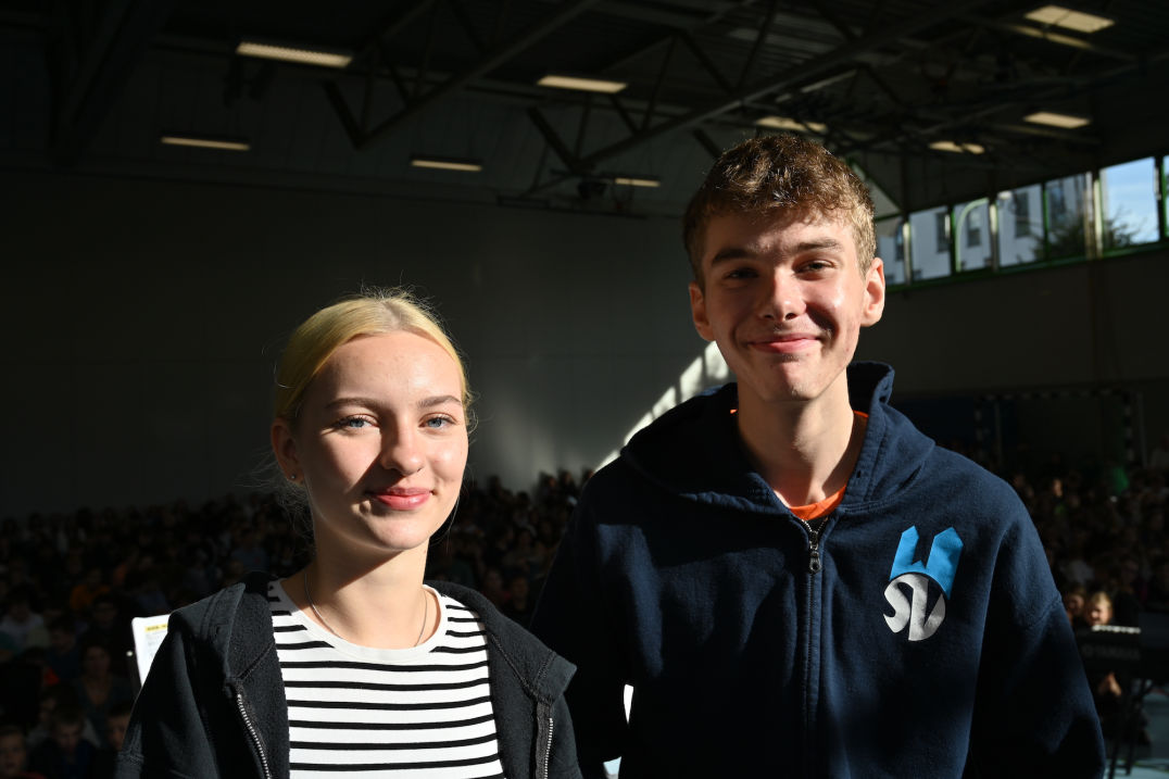 wir sind Jolina und Mattis. Wir sind eure neuen Schulsprecher!