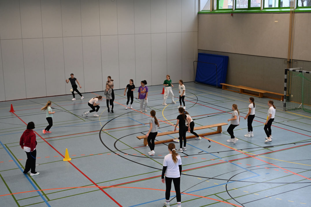 Wir wurden zunächst in der neuen Aula empfangen und nett begrüßt. Anschließend hatten die Schülerinnen und Schüler Zeit, sich und den Schulhof in der Pause kennenzulernen. Die Lehrkräfte besprachen letzte Details und schon konnte das Turnier starten. Die Teams spielten jeweils in einer Mädchen- und Jungengruppe die Platzierungen aus. Dabei spielte jeder gegen jeden.