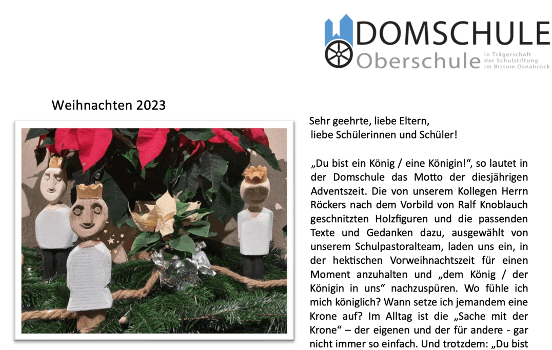 liebe Freunde, Partner und Förderer der Domschule!