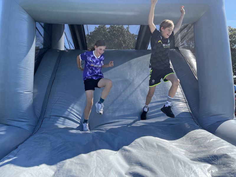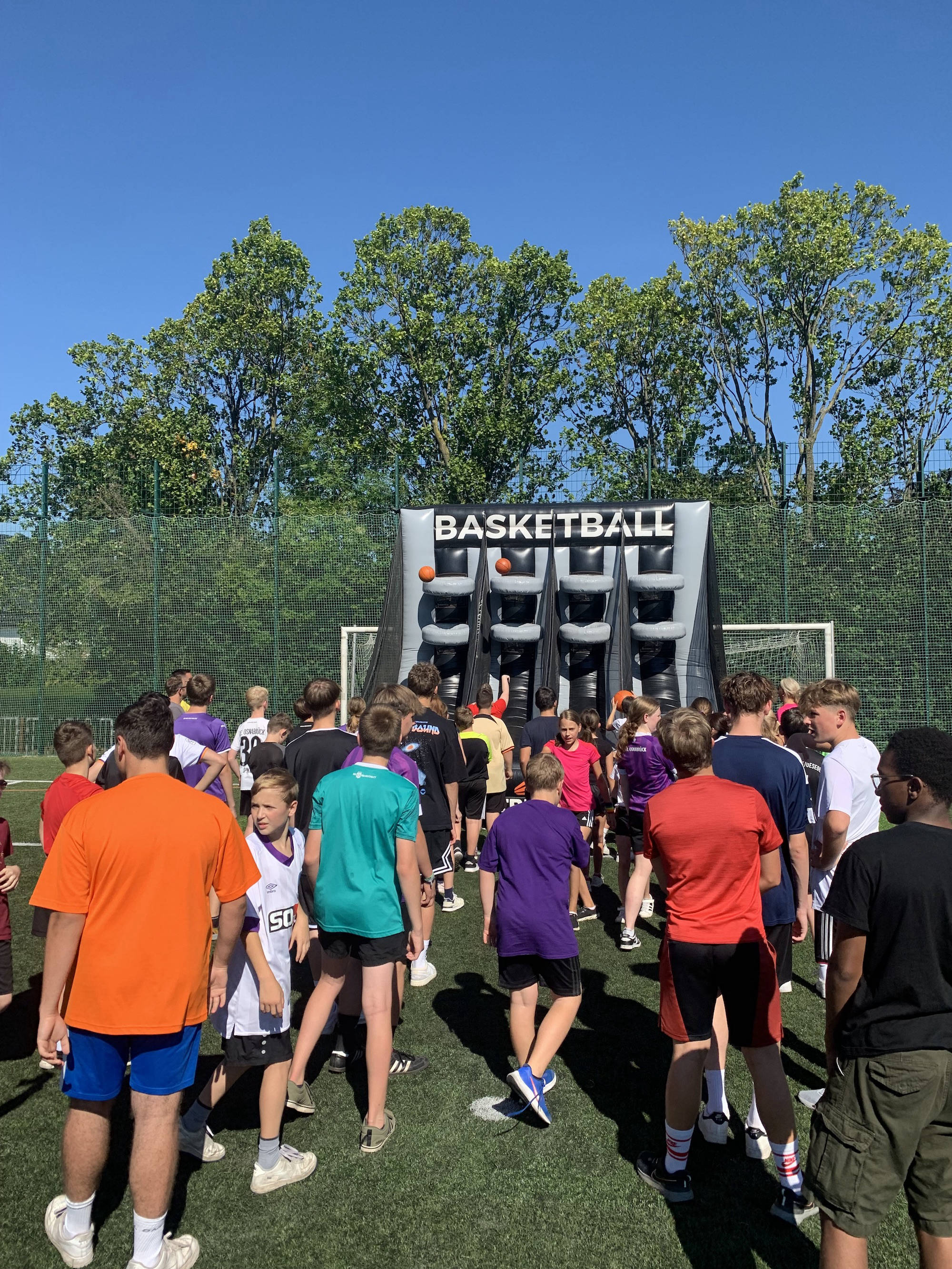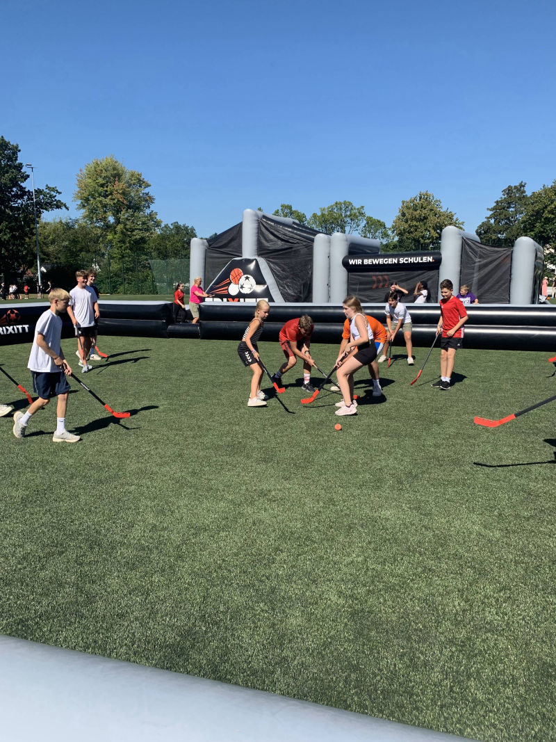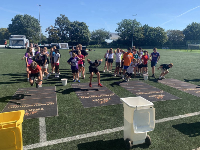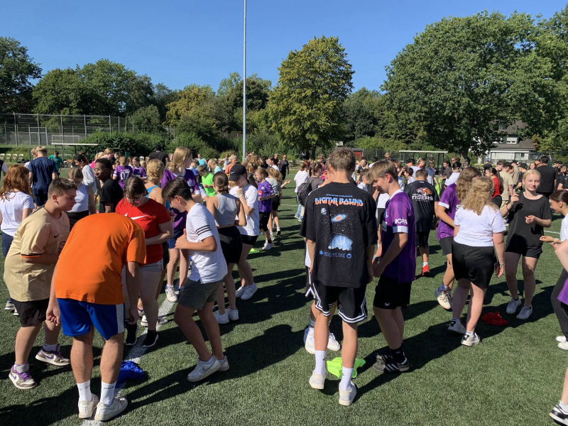 Dann wartete ein Stationsbetrieb der TRIXITT GmbH auf alle SuS. Das war eine große Herausforderung aufgrund der Temperaturen auf dem Platz. Es gab genug kalte Getränke für alle. Die SuS hatten viel Spaß und alle drei für Fairness ausgezeichneten Gruppen kamen von der Domschule. Ein unvergesslicher Tag wurde es dann noch für die großen VFL-Fans, da die Mannschaft nebenan trainierte und im Anschluss geduldig Autogramme gab- sogar auf Fußballschuhe! Verschwitzt und happy fuhren alle wieder nach Hause.