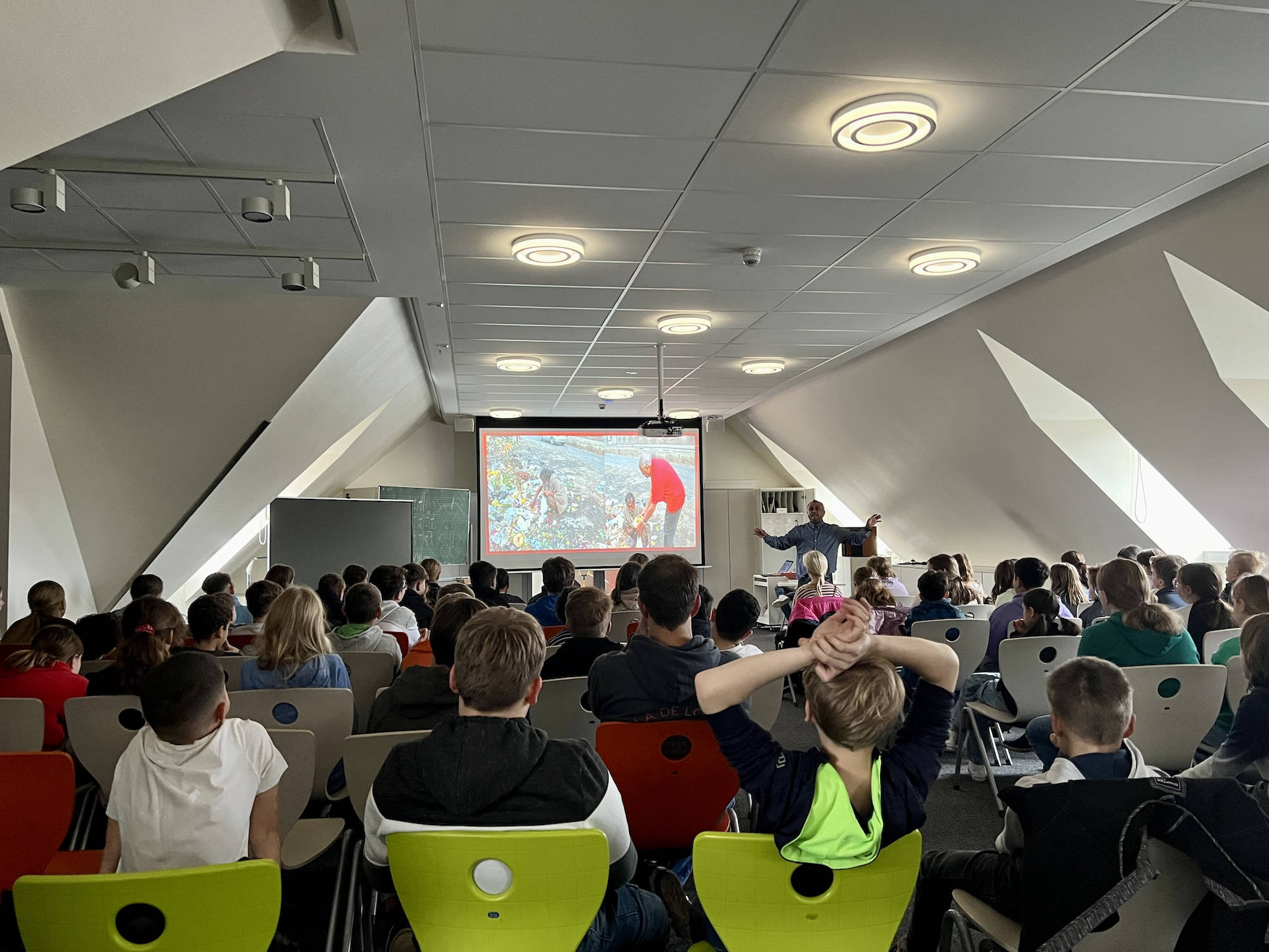 Ein zentraler Bestandteil der Arbeit von Pater Franklin und seinen Mitbrüdern stellt der Aufbau und die Bereitstellung von Schulen dar. Kinder, die sonst keinen Zugang zu Bildung hätten, können zur Schule gehen und erhalten damit die Chance auf eine bessere Zukunft. Für die Schüler sehr interessant waren die Bilder aus den Schulprojekten, weil sie einen direkten Vergleich zu ihrer Lernsituation ziehen konnten. Deutlich wurde, dass man auch auf dem Boden sitzend begeistert lernen und Fußballturniere zur Not auch barfuß spielend gewinnen kann.