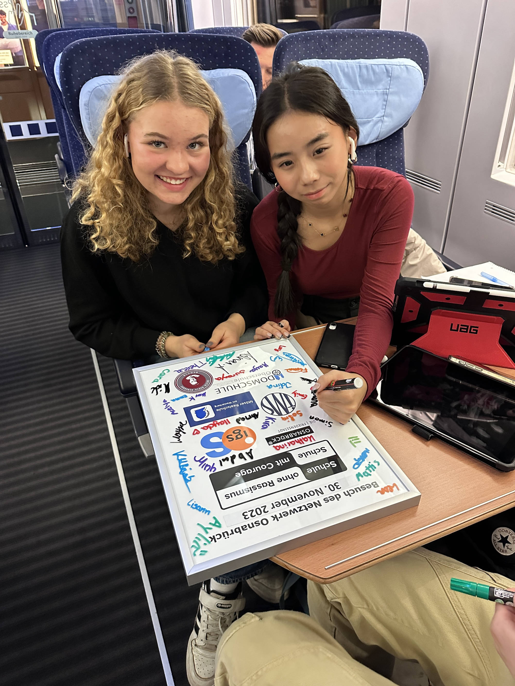 Um 18:30 fuhren wir mit einem Ersatzzug nach Osnabrück, weshalb wir in der 1. Klasse fahren durften. Ein tolles Erlebnis. Trotz eines turbulenten Tages war es sehr schön. Erschöpft kamen wir in Osnabrück um 22 Uhr zurück.