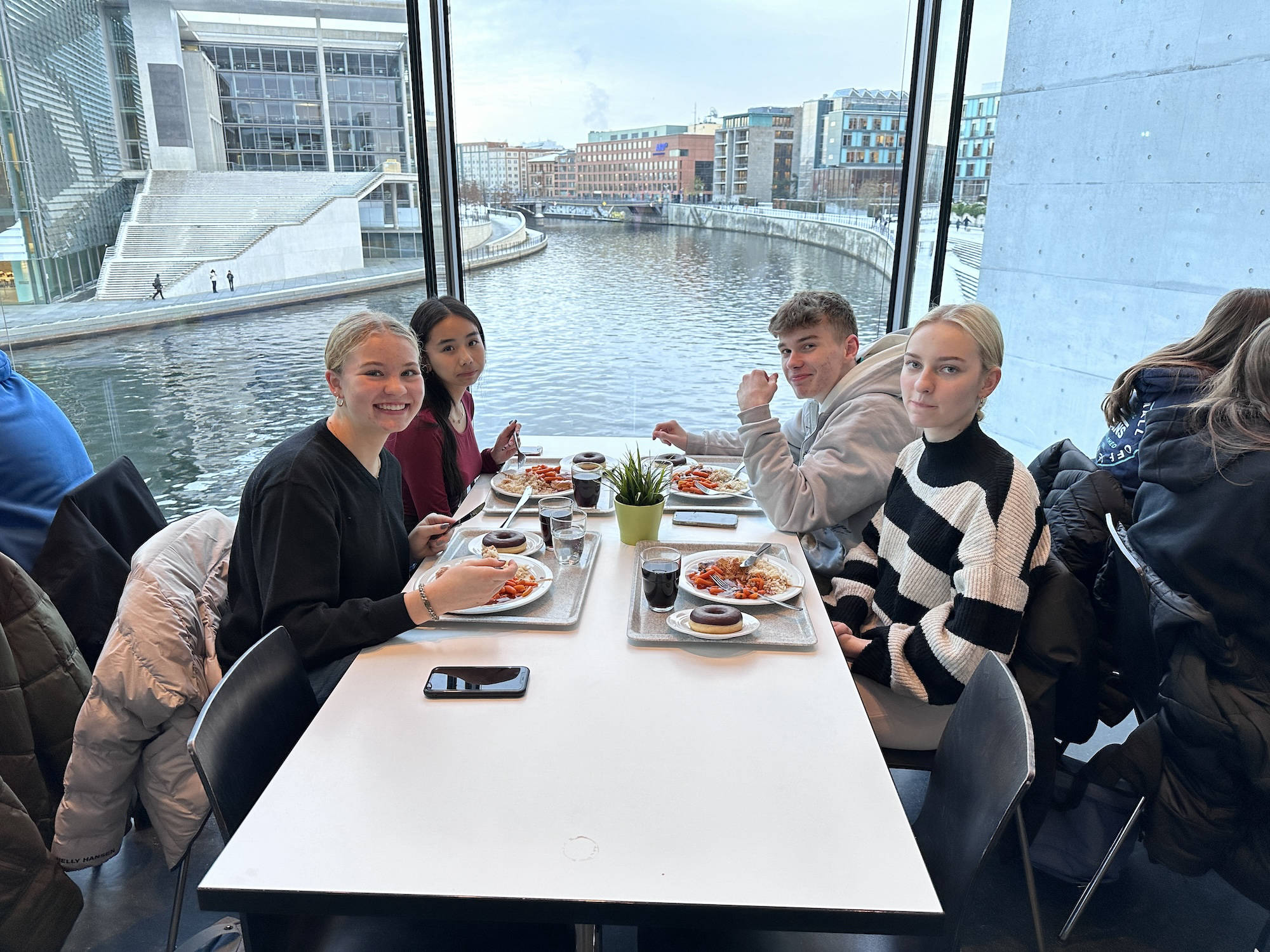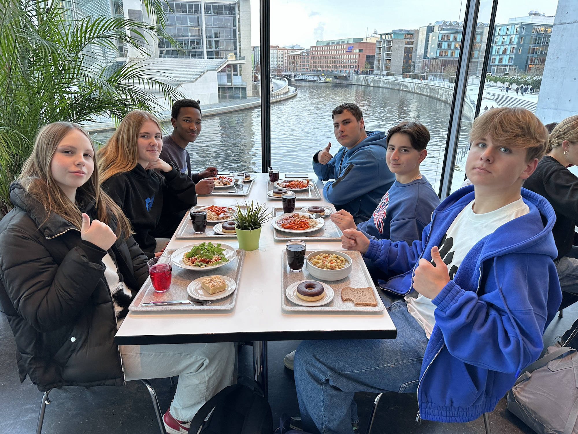 Nach dem Treffen sind wir auf die Kuppel vom Bundestagsgebäude gegangen und durften anschließend ein gemütliches und leckeres Mittagessen an der Spree genießen.
