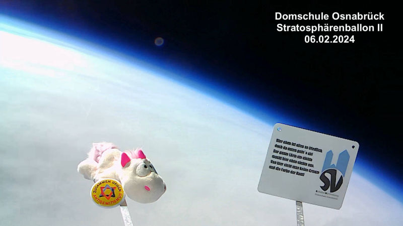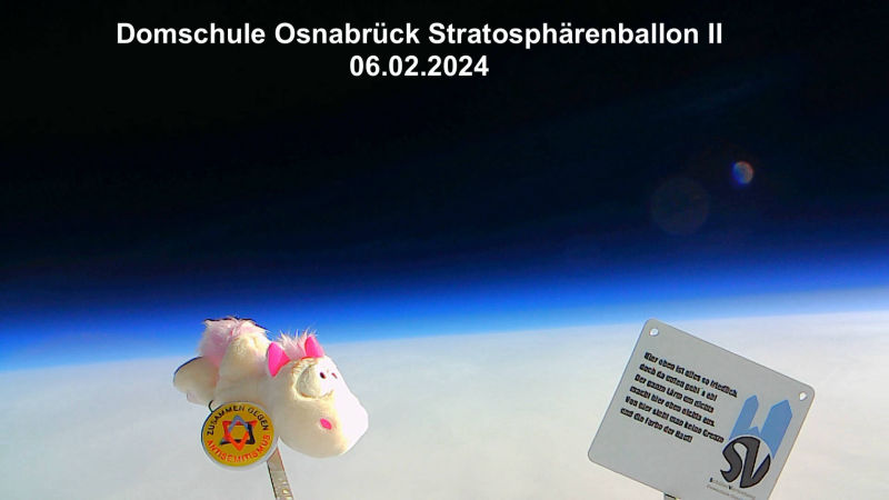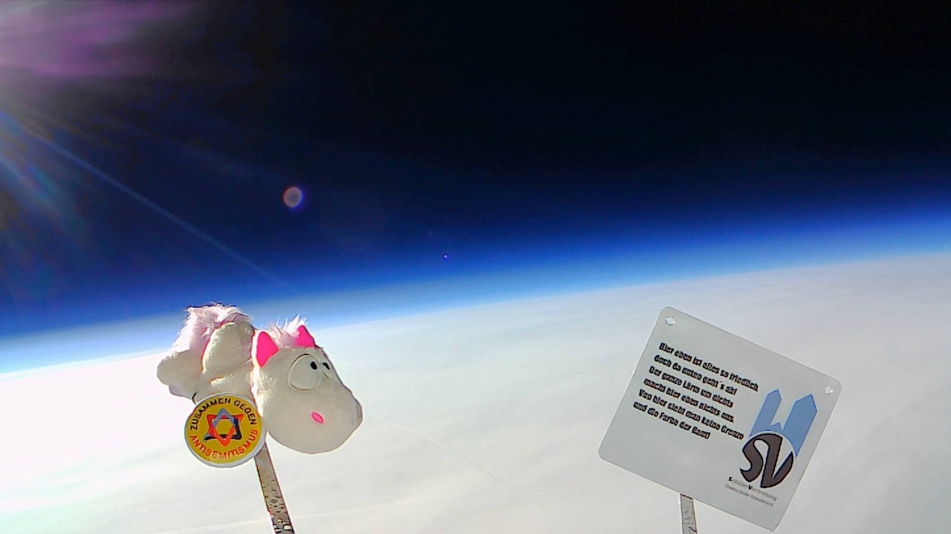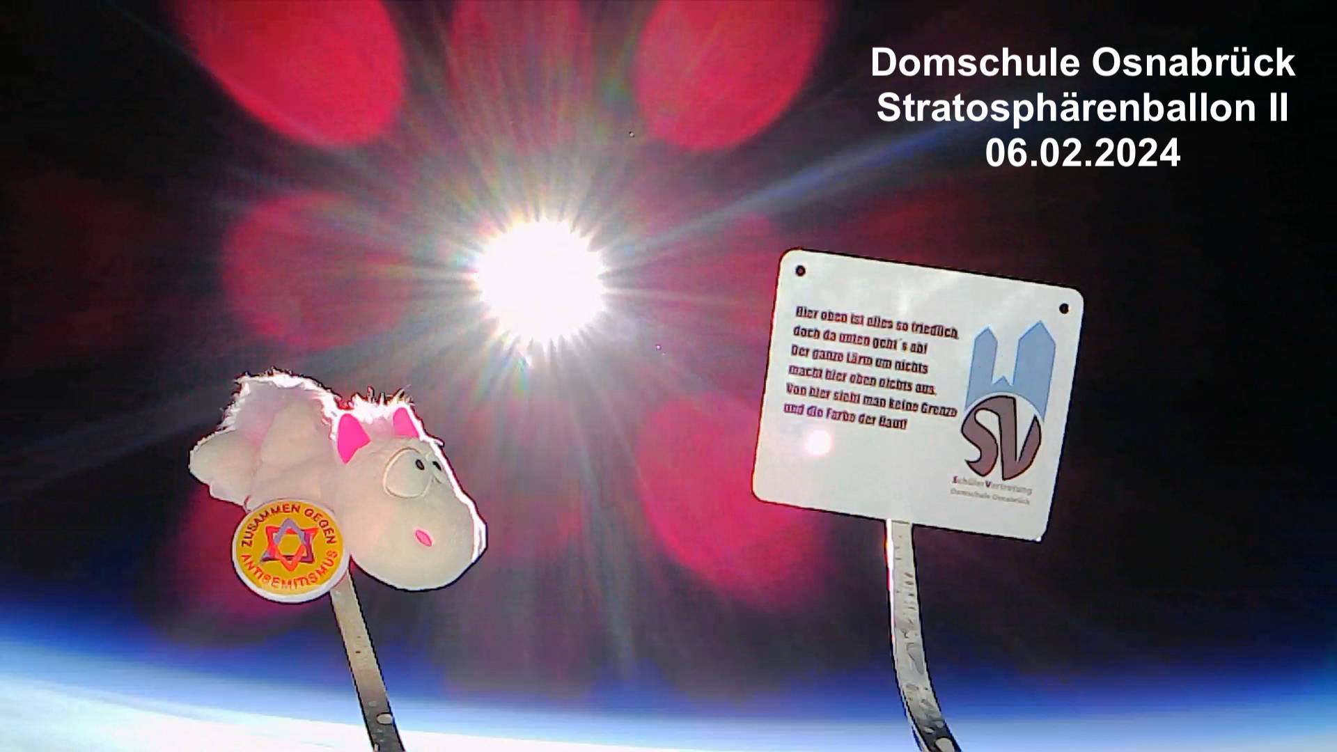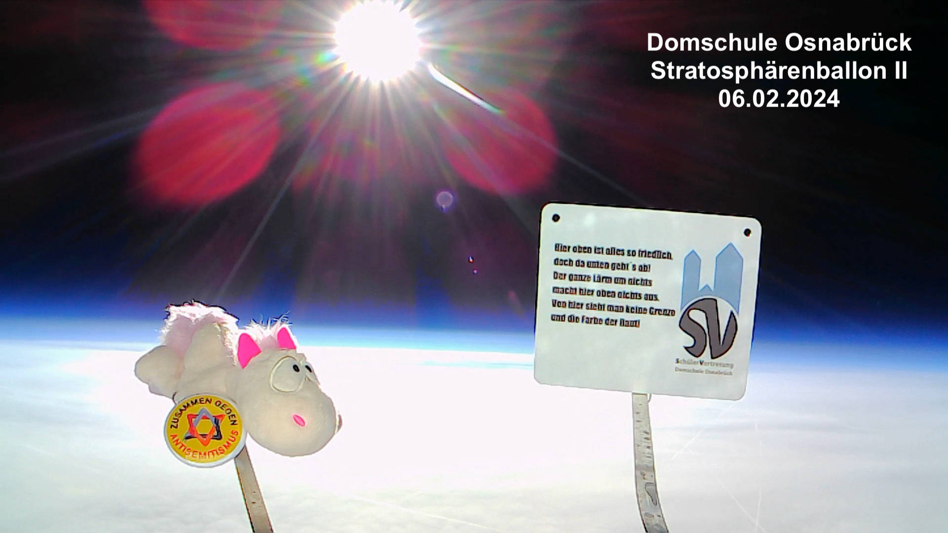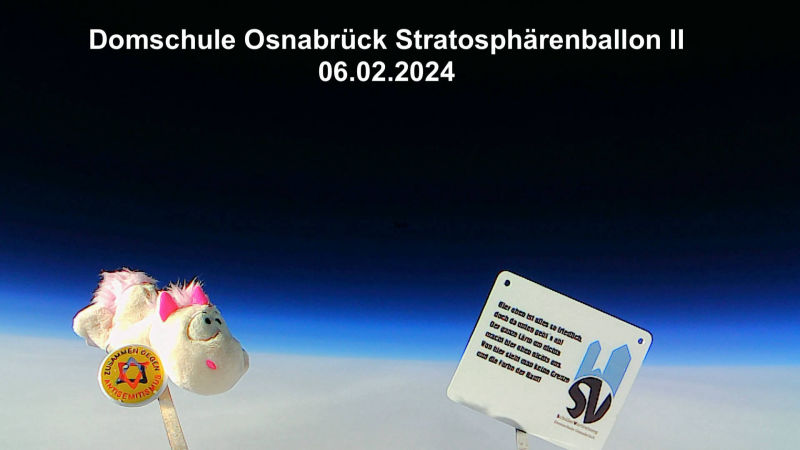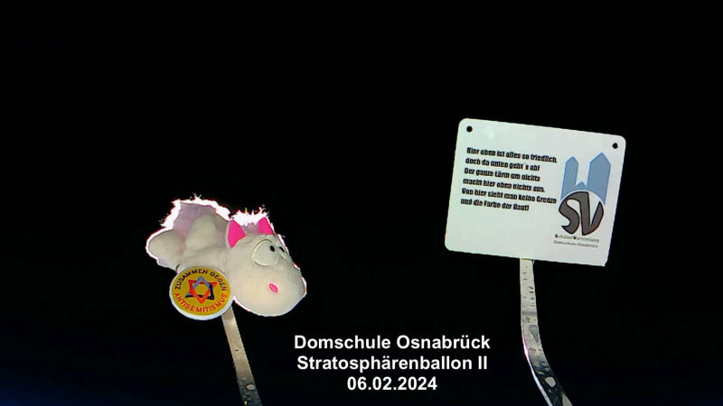 Vier nach oben, unten und seitlich(2) ausgerichtete Kameras machten während des Aufstiegs und des Niedergangs insgesamt ca. 7Stunden lang Film und Bildaufnahmen von hervorragender Qualität. Der Aufstieg durch verschiedene Wolkenschichten, das enorme Ausdehnen des Ballons mit einer ca. Vervierundsechzigfachung des Volumens und die Veränderung des Sonnenstrahlenspektrums ab dem oberen Ozonschichtbereich sind klar zu sehen. Die Aufnahmen zeigen die Erdkrümmung, die Lufthülle "unseres" Planeten im Schnitt und das "schwarze Nichts" des Alls. Auf das Platzen des Ballons um 12:08Uhr in der Maximalhöhe folgen Bilder des rasanten Niedergangs der Styroporbox mit den Kameras und der Messelektronik bis zum Eintauchen in eine Baumkrone (51°40´8.6880N 12°21´11.5920E) in einem kleinen Waldstück nordwestlich des Bahnhofsgebäudes von Muldenstein, Landkreis Anhalt-Bitterfeld in Sachsen-Anhalt. Die Ortung mittels GPS-Tracker funktionierte problemlos.