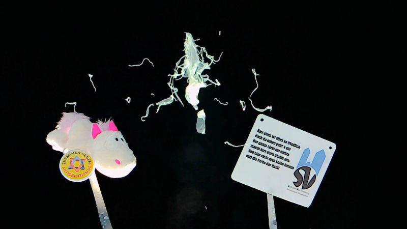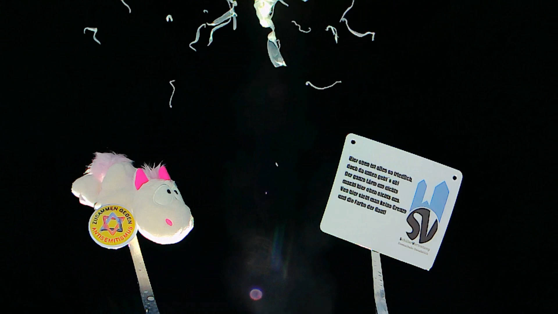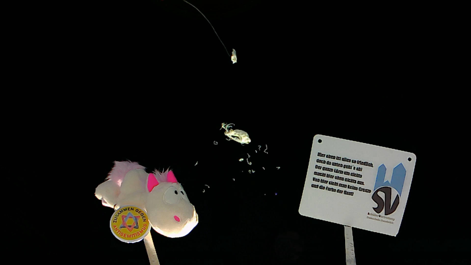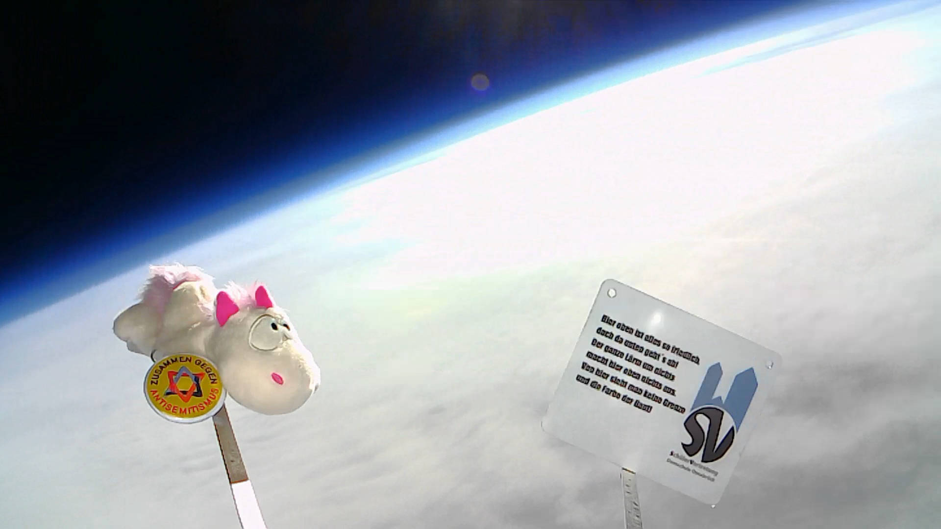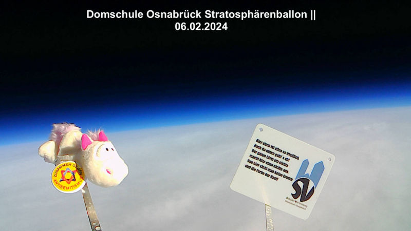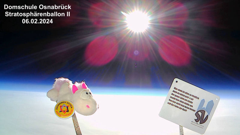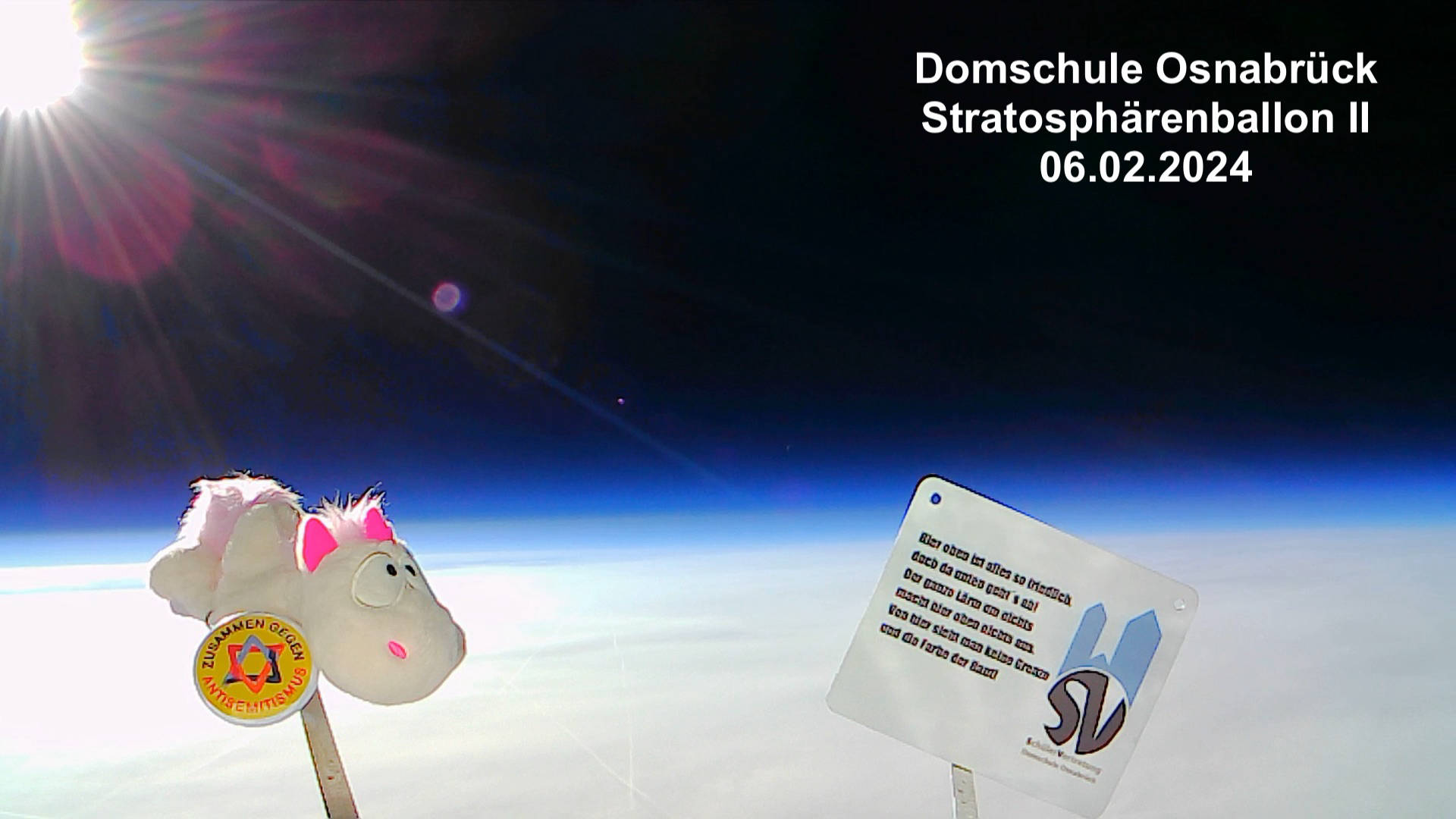 Vier nach oben, unten und seitlich(2) ausgerichtete Kameras machten während des Aufstiegs und des Niedergangs insgesamt ca. 7Stunden lang Film und Bildaufnahmen von hervorragender Qualität. Der Aufstieg durch verschiedene Wolkenschichten, das enorme Ausdehnen des Ballons mit einer ca. Vervierundsechzigfachung des Volumens und die Veränderung des Sonnenstrahlenspektrums ab dem oberen Ozonschichtbereich sind klar zu sehen. Die Aufnahmen zeigen die Erdkrümmung, die Lufthülle "unseres" Planeten im Schnitt und das "schwarze Nichts" des Alls. Auf das Platzen des Ballons um 12:08Uhr in der Maximalhöhe folgen Bilder des rasanten Niedergangs der Styroporbox mit den Kameras und der Messelektronik bis zum Eintauchen in eine Baumkrone (51°40´8.6880N 12°21´11.5920E) in einem kleinen Waldstück nordwestlich des Bahnhofsgebäudes von Muldenstein, Landkreis Anhalt-Bitterfeld in Sachsen-Anhalt. Die Ortung mittels GPS-Tracker funktionierte problemlos.